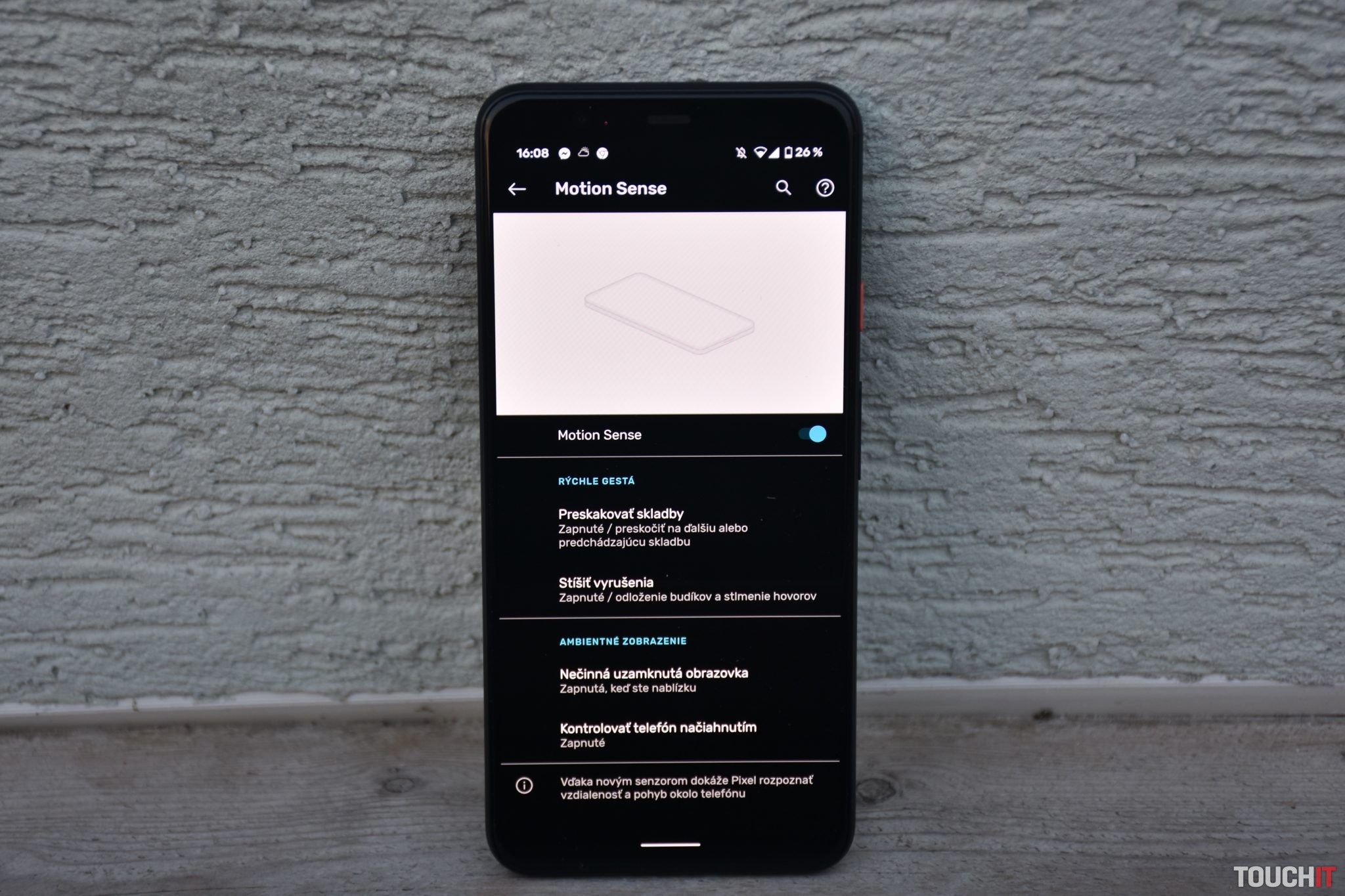Čo sa týka ovládania, tak to mi taktiež vyhovovalo, nakoľko je tu systém ovládania gestami, čiže veľmi podobný tomu s iOS a keď vám to nevyhovuje, tak môžete mať na displeji zobrazené virtuálne tlačidlá – v spodnej časti a s možnosťou prispôsobenia, ako je u Android zariadení zvykom. Zaujímavosťou je Motion Sense radar, vďaka ktorému viete ovládať určité prvky v systéme pomocou gest. Môžete prepínať skladby, stišovať hovory, posúvať fotky v galérii, stíšiť budík a pod.