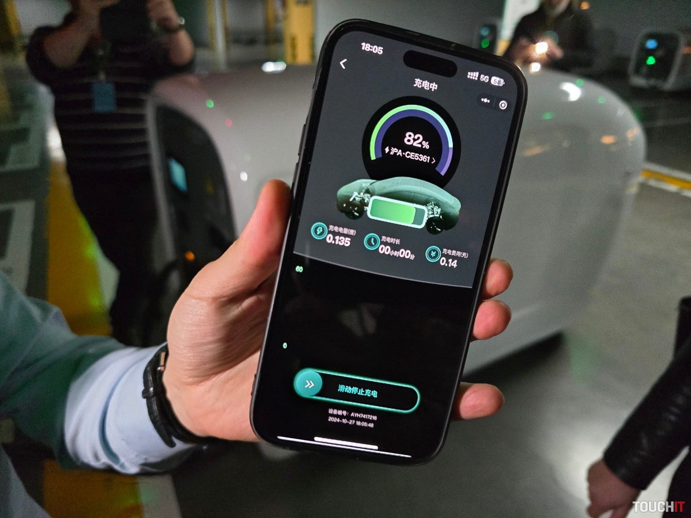 Proces nabíjania vášho vozidla potom riadite mobilnou aplikáciou. Tu vidíte aj stav nabíjania, čas do jeho ukončenia a môžete ešte pridať napr. aj klimatizáciu kabíny počas nabíjania. Celý proces sme videli v centrále firmy Gotion v čínskom meste Hefei.