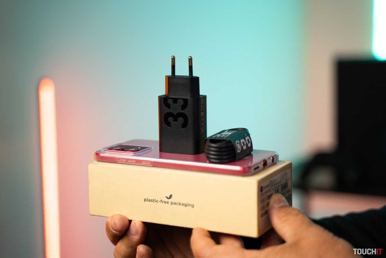 Súčasťou dodávky je napájací zdroj s výkonom 33 W, prepojovací kábel a tiež priezračný plastový obal. Balenie je v papierovej krabičke z recyklovaného papiera, vo vnútri nie je žiadny plast.