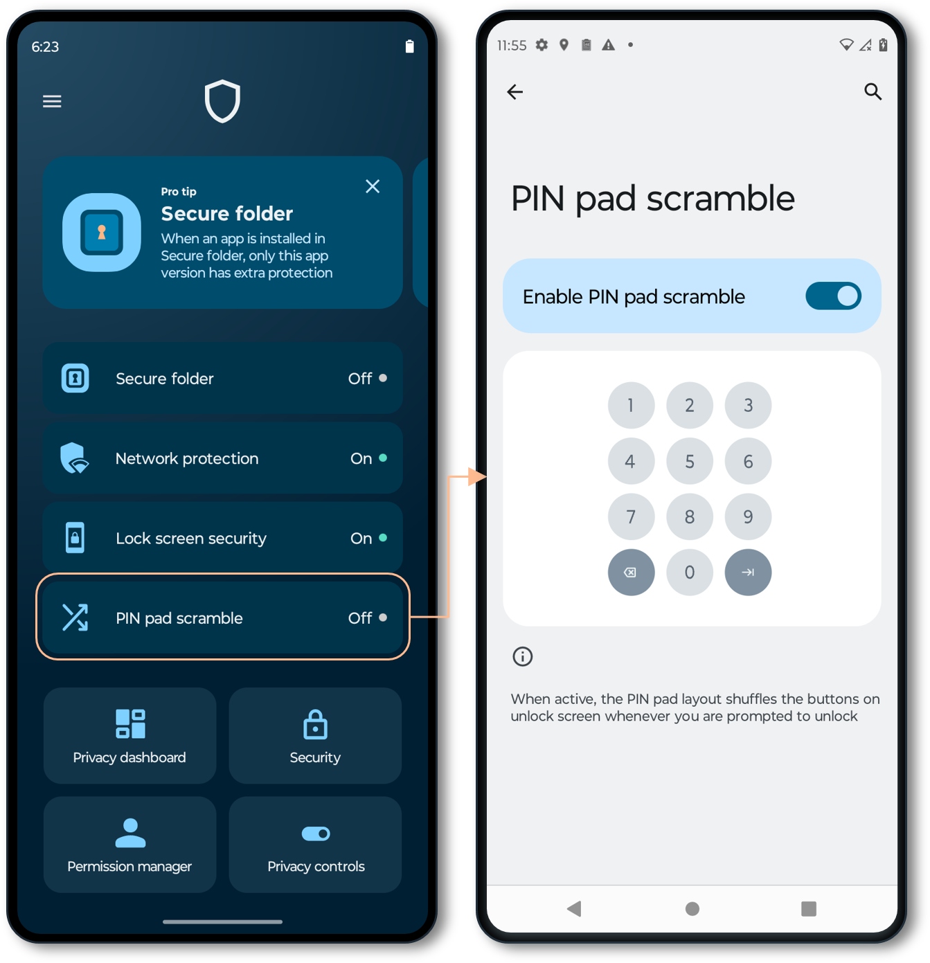 Z pohľadu bezpečnosti ide o previazanie hardvéru a softvéru a používatelia získajú možnosť vytvorenia zabezpečeného priečinka, ktorý je chránený špecifickým PIN kódom. Tu si môžu vybrať maskované ikony zo štyroch možností a zvoliť si názov priečinku namiesto viditeľného zobrazenia aplikácií v menu. Je to vhodné na skrytie aplikácií na prístup do banky alebo e mailových aplikácií, či ďalších, v ktorých používate citlivejšie dáta.