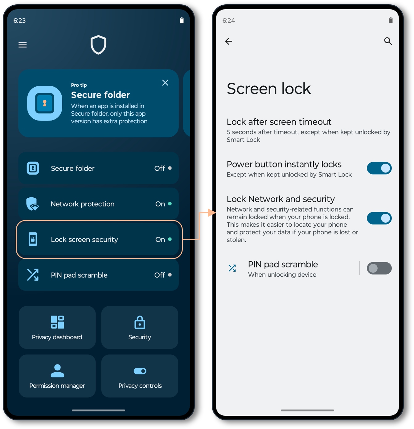 Pridáva napríklad možnosť zákazu vypnutia dátového spojenia tak, aby útočníci nemohli z uzamknutej obrazovky zamedziť pripojeniu telefónu na internet. Táto funkcia je tiež dostupná aj na smartfónoch iných značiek.