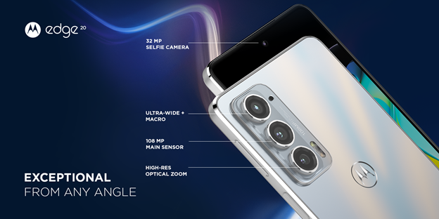 Všetky zariadenia série motorola edge 20 sú vybavené 108-megapixelovým hlavným fotoaparátom s technológiou Ultra Pixel, ktorý poskytuje ostrý a jasný obraz aj v tých náročnejších svetelných podmienkach vďaka 9-násobne väčším ultra pixelom, čo znamená 9-krát vyššiu citlivosť na svetlo.