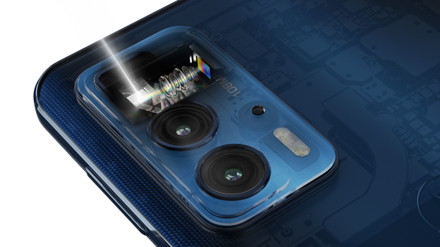 Motorola edge20 pro disponuje prvým teleobjektívom v štýle periskopu, ktorý ohýba svetlo o 90 stupňov pre vysokú ostrosť z 5-násobnej vzdialenosti. Na dosiahnutie optického zoomu vo vysokom rozlíšení musí fotoaparát zaostriť na väčšiu vzdialenosť. Preto musia byť prvky objektívu v kamerovom module ďalej od seba.