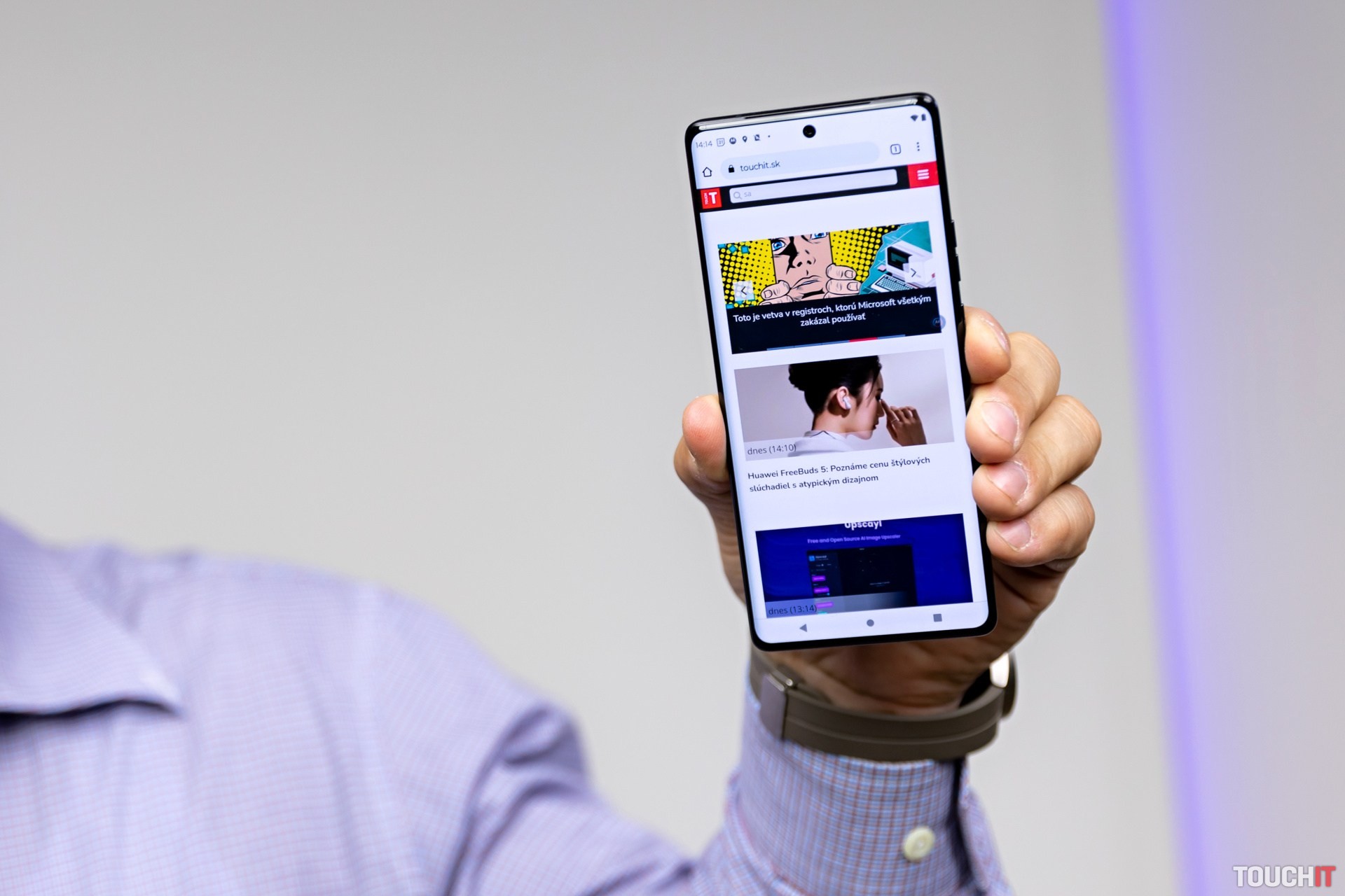 To je pekná črta tohto telefónu. Jeho uhlopriečka je 6,67 palcov a jeho frekvencia je až 165 Hz. Znamená to plynulý obraz aj pri rýchlych pohyboch obrazu. Podporuje Dolby Vision, HDR+, jeho rozlíšenie je FullHD+ a špičková svietivosť je 1300 nitov. Je to pOLED displej s farebným spektrom DCI-P3 a hustotou pixelov 394 ppi. Pomer strán displeja je 20:9.