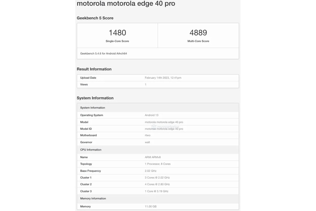 Už skoršie správy naznačovali, že Edge 40 Pro bude mať vo svojej výbave až 12 GB RAM, čo potvrdili aj testy na platforme Geekbench. Je bežnou praxou, že na porovnávacie testy sa použije najvýkonnejší model, hoci základná verzia má “iba” 8 GB RAM. Testovaný telefón mal nainštalovaný Android 13.