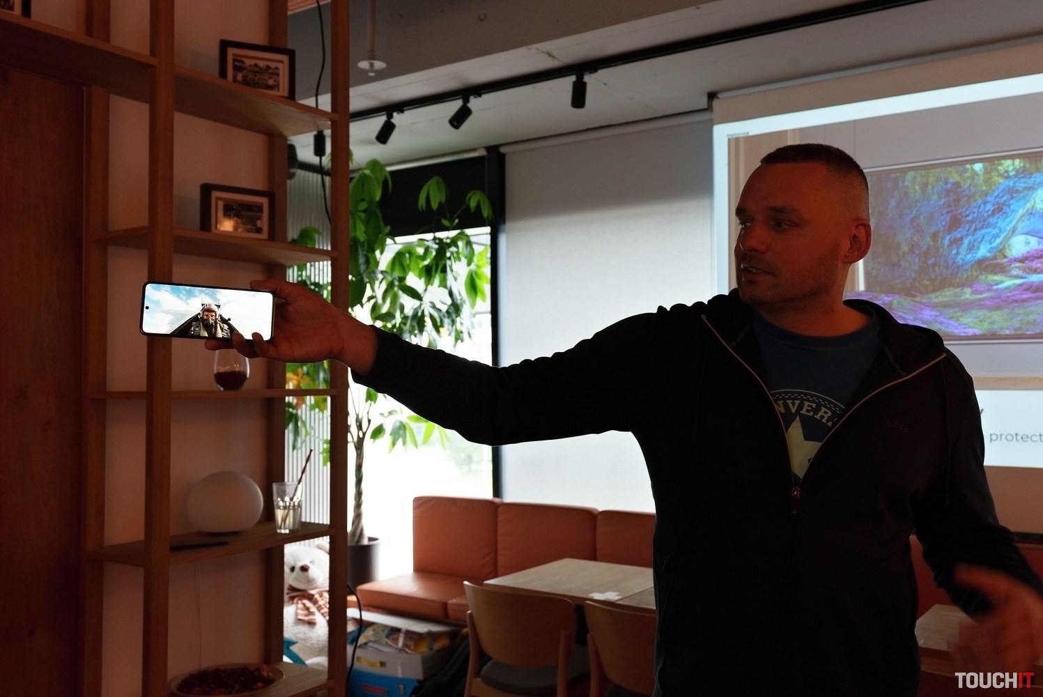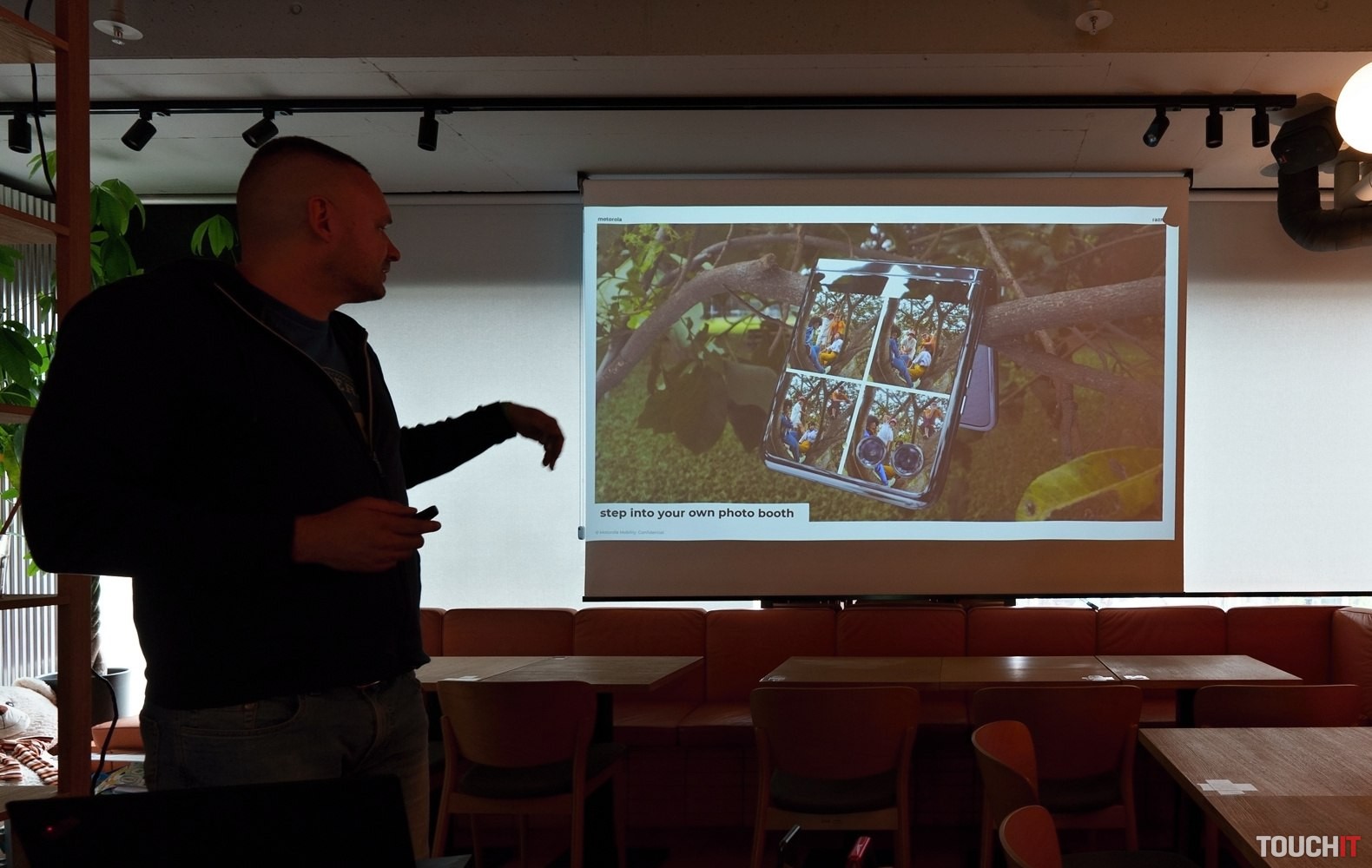 Využiť sa dá aj fotografovanie v otvorenom stave telefónu, napr. keď si dáte telefón do tvaru písmena L. Vtedy využijete 32 Mpx selfie fotoaparát a takto sa dá ľahko realizovať aj videohovory. Fotoaparáty dopĺňa 13 MPx ultraširokouhlý objektív + makroobjektív, ktorý umožňuje robiť širokouhlé zábery. Takto sa do záberu dostane 3x viac obrazu ako pri hlavnom objektíve.