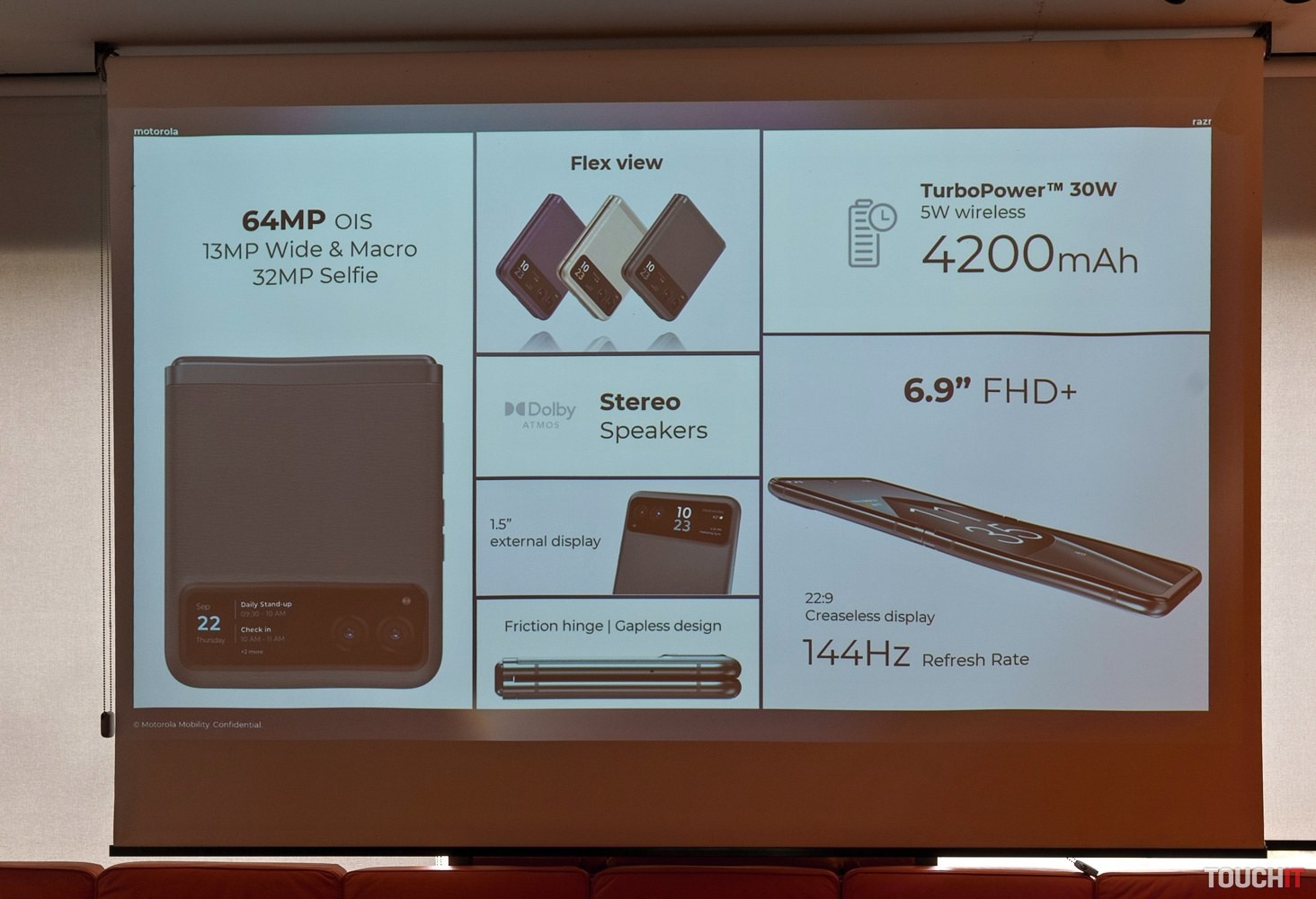 Telefón razr 40 prichádza s výrazným a štýlovým vzhľadom, ktorý kombinuje sklo Gorilla Glass a prémiovú vegánsku kožu. Telefón sa ľahko drží, je mäkký na dotyk a dodáva sa v módnych farbách vybraných v spolupráci so spoločnosťou Pantone. Tento telefón príde na slovenský trh na začiatku júla.