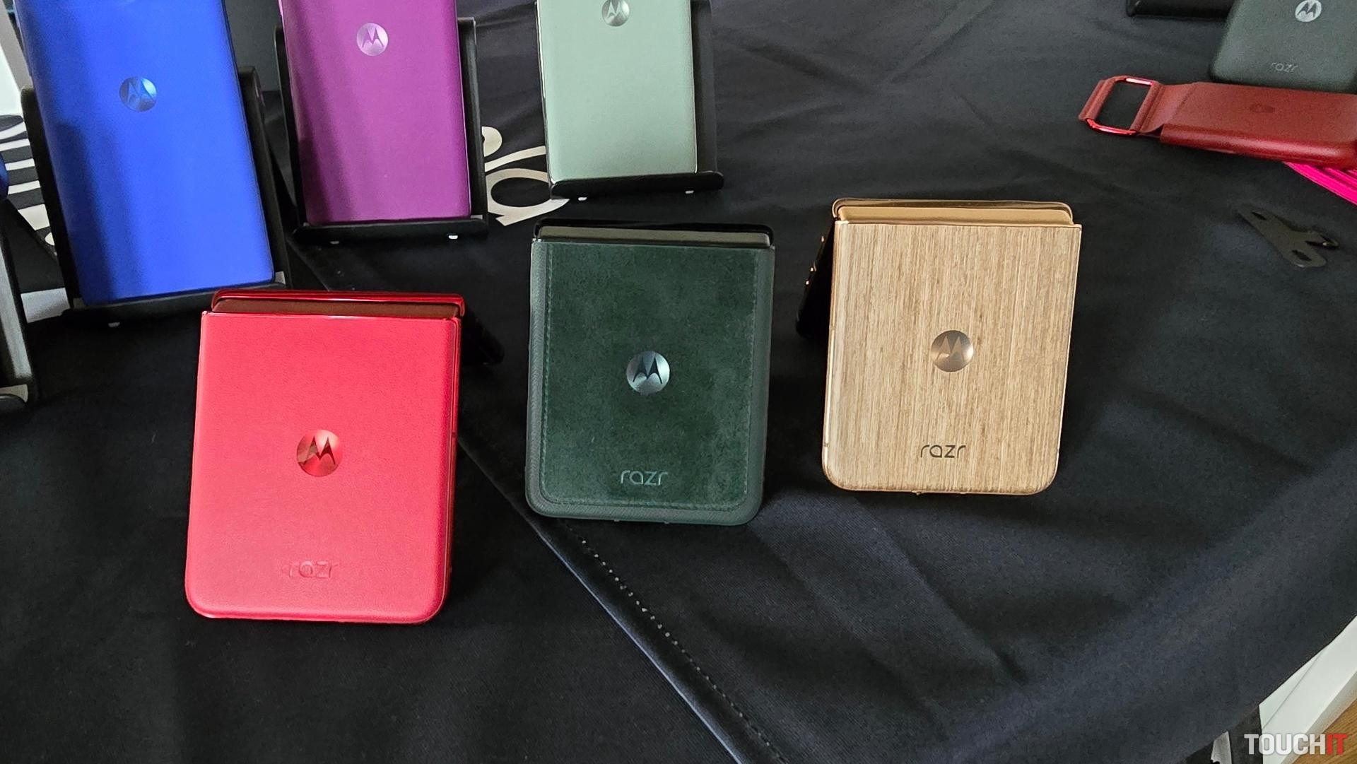 S Motorola Razr 60 si môžete vybrať medzi odolným povrchom inšpirovaným kožou, sofistikovaným povrchom inšpirovaným nylonom alebo ľahkým Acetátom, ktorý prináša textúru charakteristickú pre každý prístroj. Používatelia sa môžu vyjadriť štyrmi farbami: PANTONE Gibraltar Sea, PANTONE Spring Bud, PANTONE Lightest Sky a PANTONE Parfait Pink.