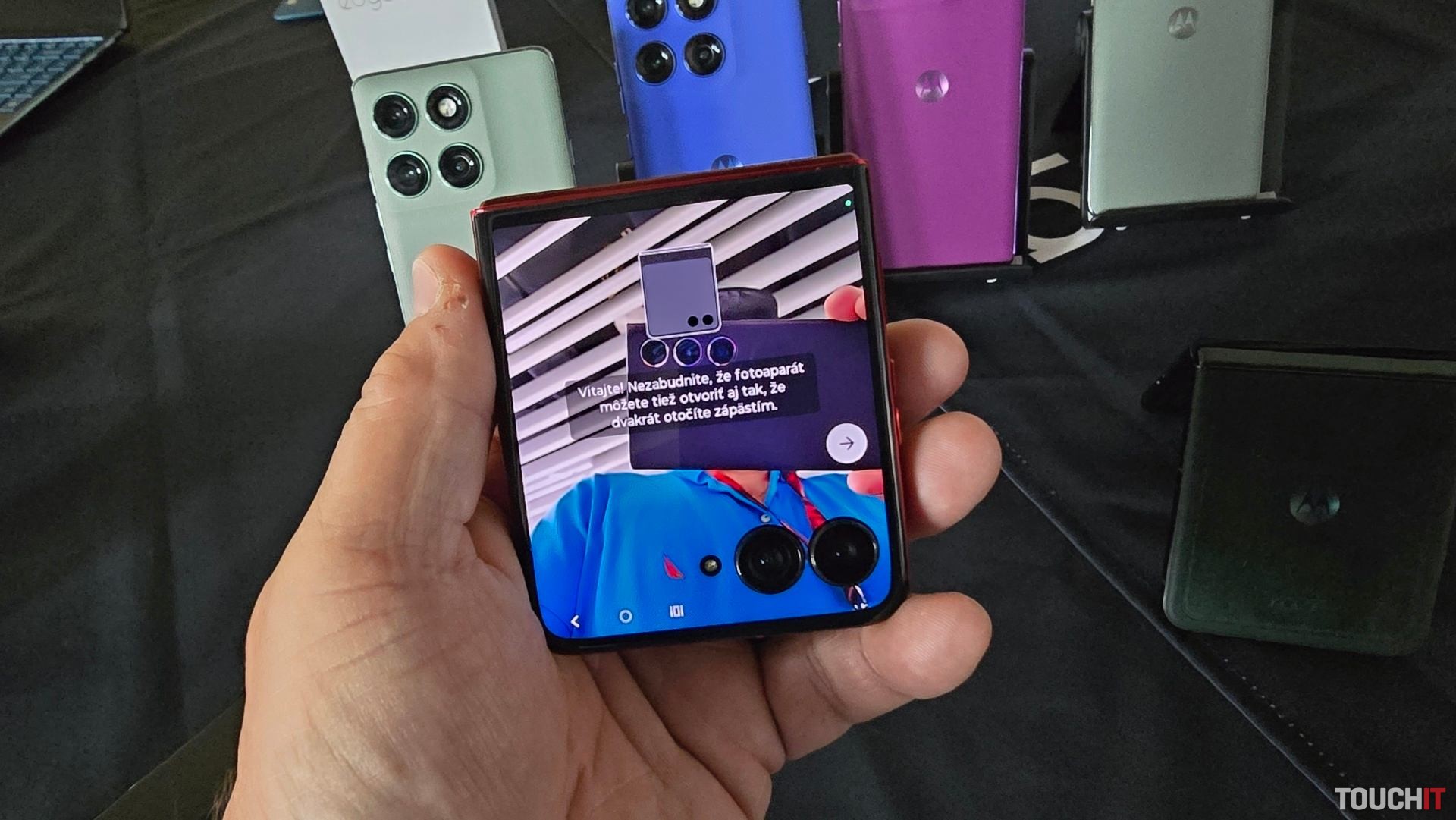 S fotoaparátmi môžete zachytiť svet tak, ako ho vidia ľudské oči, s Pantone Validated farbami a odtieňmi pleti, čo je po prvýkrát na flip telefóne. Razr zostáva najlepším telefónom pre tvorcov obsahu vďaka režimu Flex View, ktorý premieňa zariadenie na statív, gestám pre hands-free selfie a skupinové snímky a funkcii náhľadu na vonkajšom displeji. Pri nahrávaní videa môžu používatelia otočiť zariadenie do režimu retro kamery na okamžité zachytenie videa.