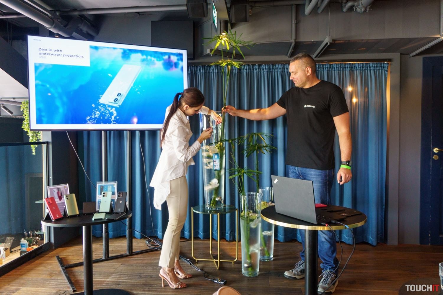 Motorola edge 40 Neo je obnova veľmi populárneho modelu Motorola edge 40. Jeho hlavnou výhodou je naozaj úplná odolnosť voči vode s certifikáciou IP68. To sme si aj na tlačovej konferencii overili a telefón vydržal vo váze s vodou celú hodinu. Po vytiahnutí fungoval ďalej.