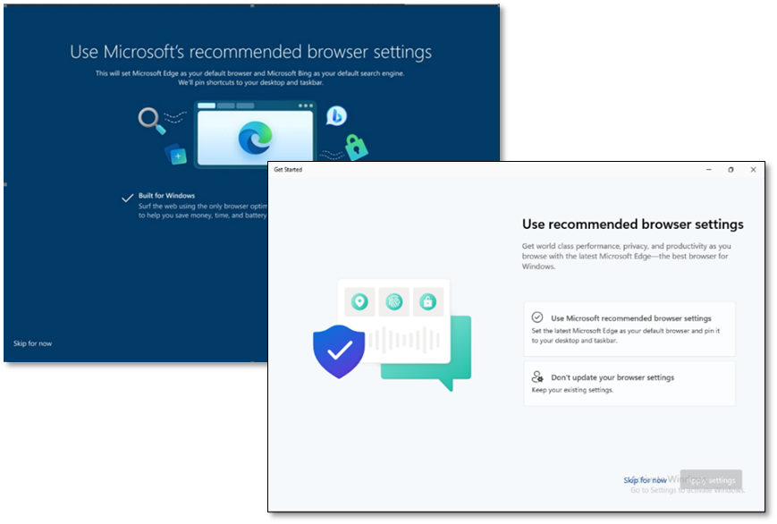 Výrobca systému odstránil niektoré praktiky, ktoré používateľa zámerne mýlili a ponúkali mu prehliadač Edge. Boli to napríklad vyskakovacie okná či iné upozornenia, ktoré sa snažili zvrátiť odlišné nastavenia než tie, ktoré si predstavoval Microsoft. Propagácie v systéme budú odstránené a výrobca hovorí, že ide nad rámec nariadení. Dotknúť sa to má aj reklamných bannerov v službe Bing.