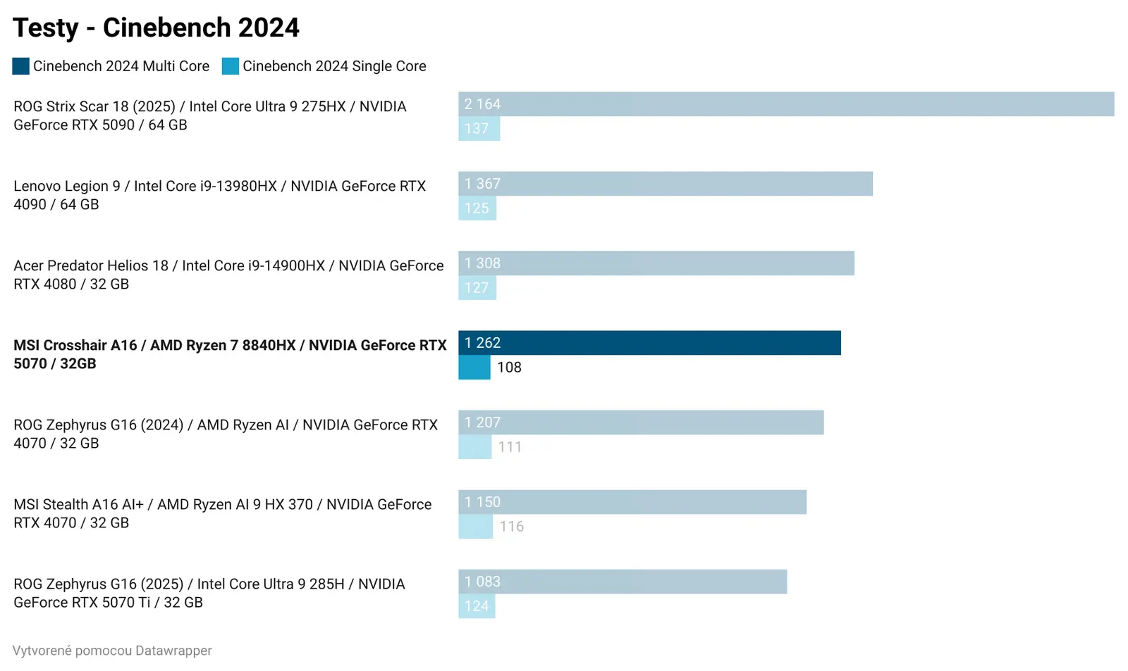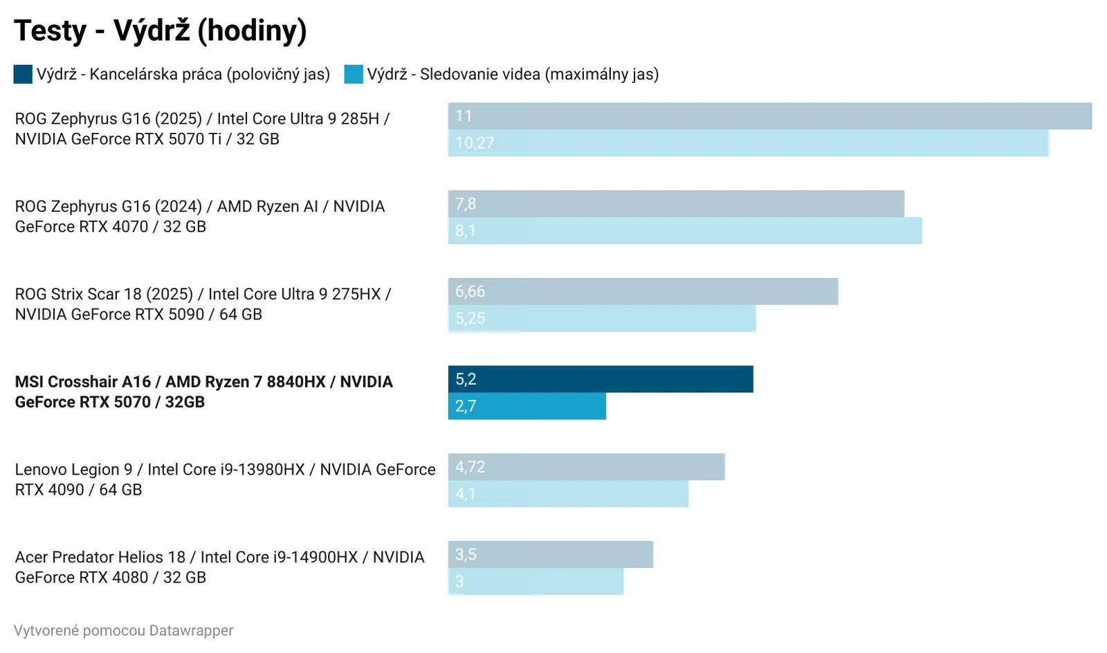 Na notebooku MSI Crosshair A16 HX D8W som hral aj Black Wukongu s nastavením Very High (73 fps), Horizon Zero Dawn Remastered (109 fps) a Dune Awakening (150 fps). V praxi ide o herný notebook s výborným výkonom vzhľadom na cenu okolo 2000 eur.