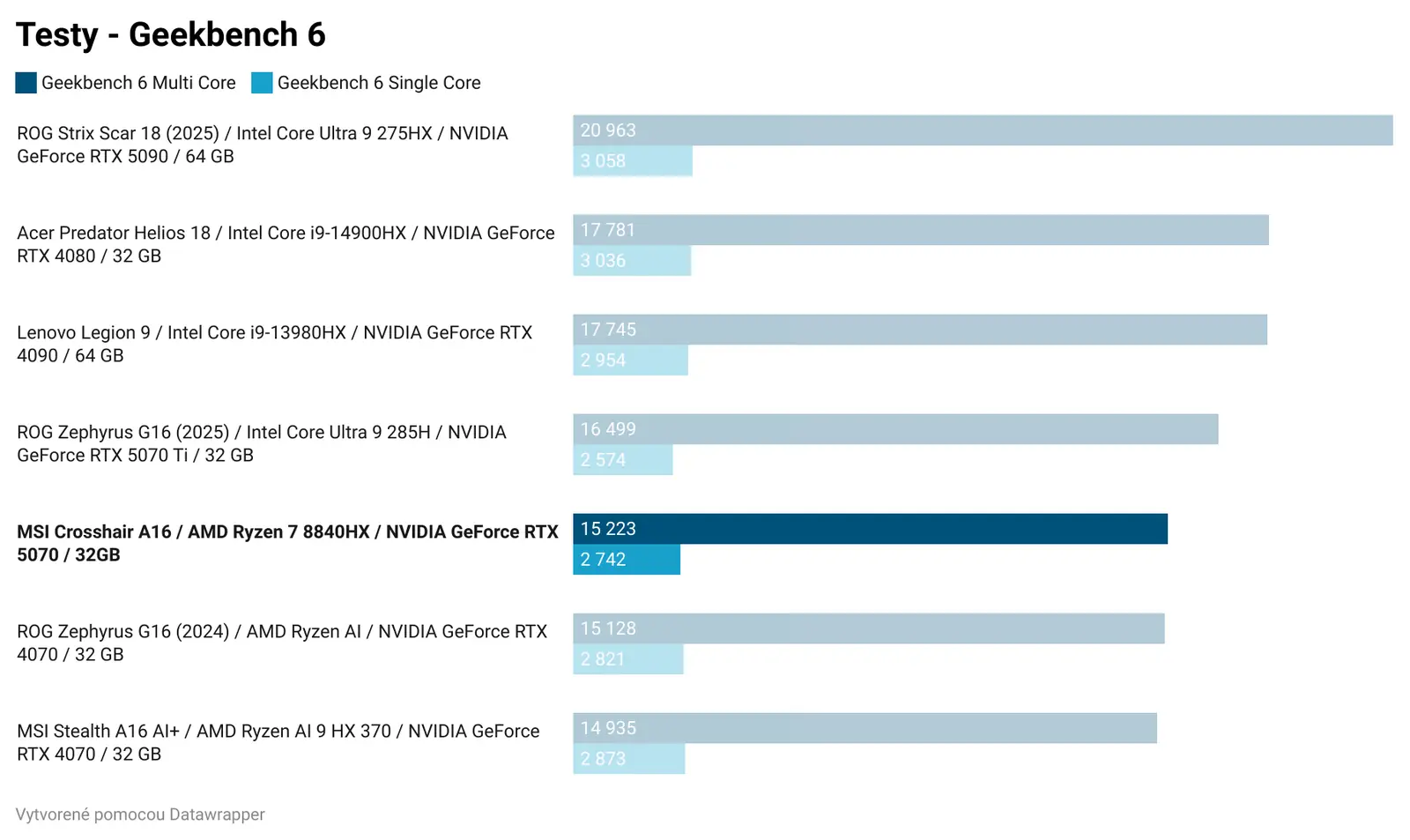 Z hľadiska pomeru cena/výbava ide o výborne vybavený notebook s vysokým surovým výkonom, ktorý si poradí aj s náročnými úkonmi. Výsledky testov v PCMark nie sú v prípade tohto procesora až také zaujímavé. Do pozornosti však dávam výsledky renderovania v Cinebench a porovnanie s inými notebookmi, ktoré sme v posledných mesiacoch v redakcii testovali.