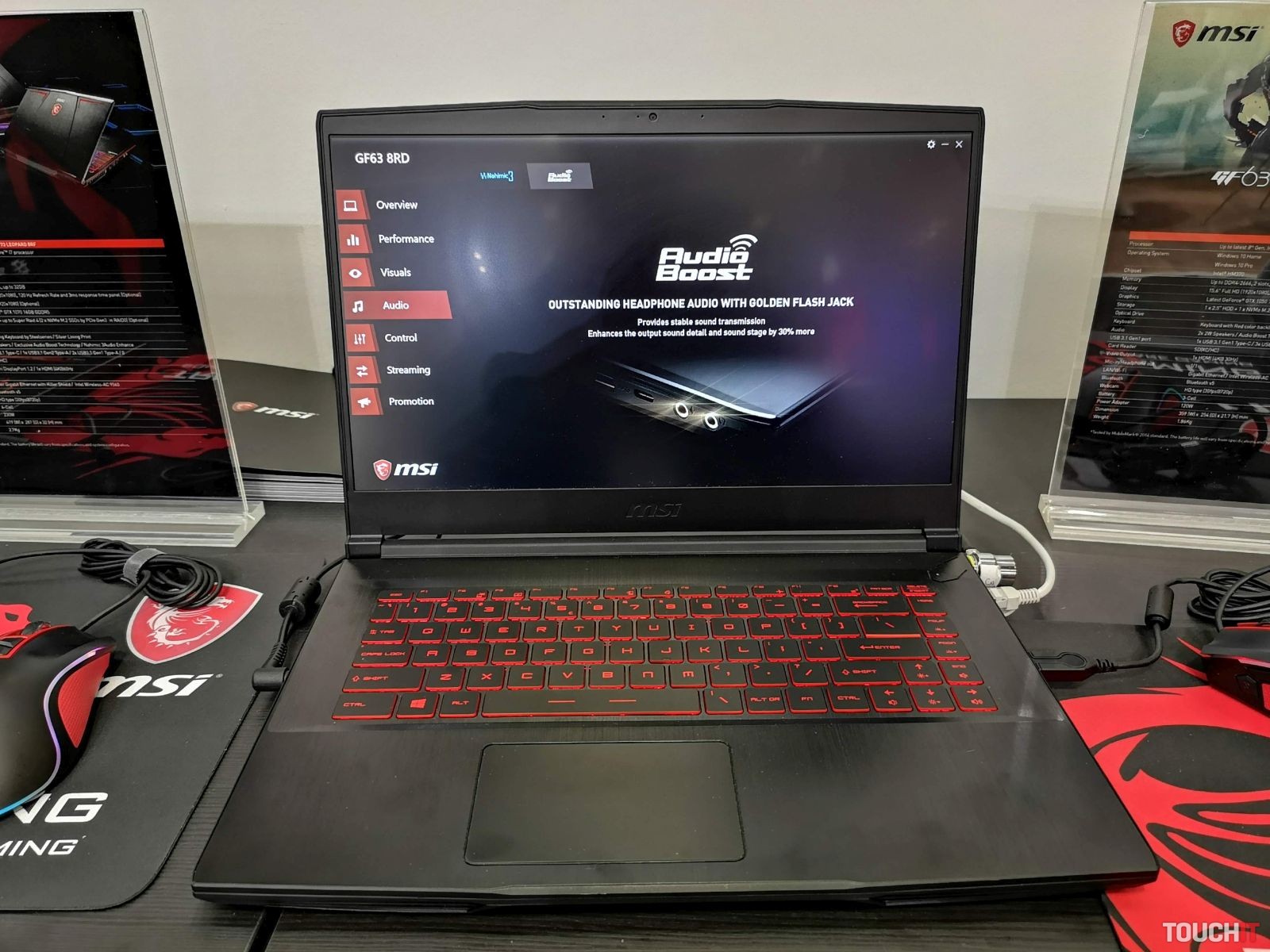 Ďalšou špecialitou je MSI GF63, prvý notebook tohto výrobcu s ultratenkými rámikmi okolo displeja. Displej tiež ponúka 144 Hz obnovovaciu frekvenciu a v notebooku nájdete aj množstvo pokročilých technológií, ktorými je tento výrobca dobre známy. Softvérovú výbavu nedávno rozšírila nová aplikácia MSI App Player, ktorá slúži na spúšťanie Android aplikácií na počítači so systémom Windows.