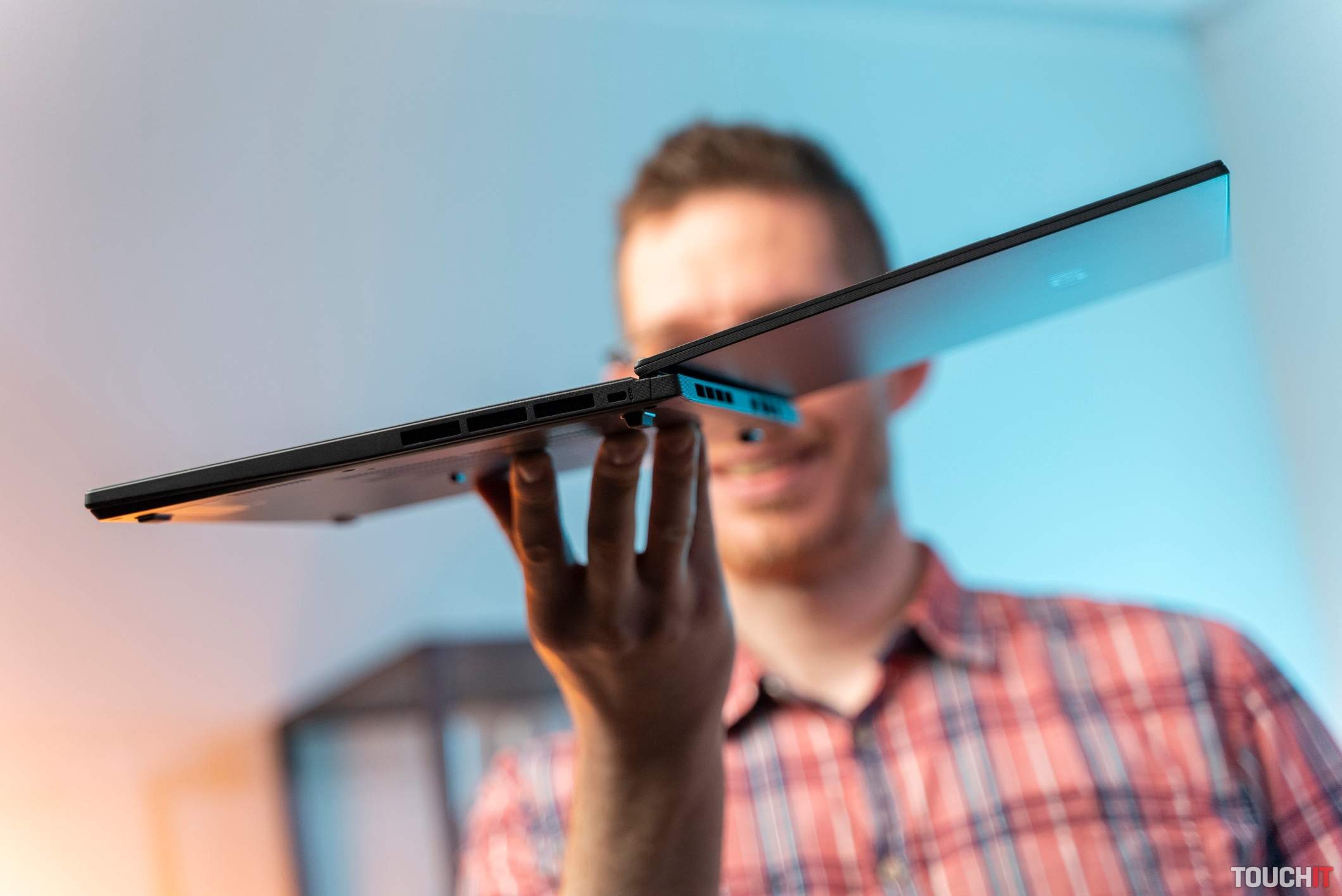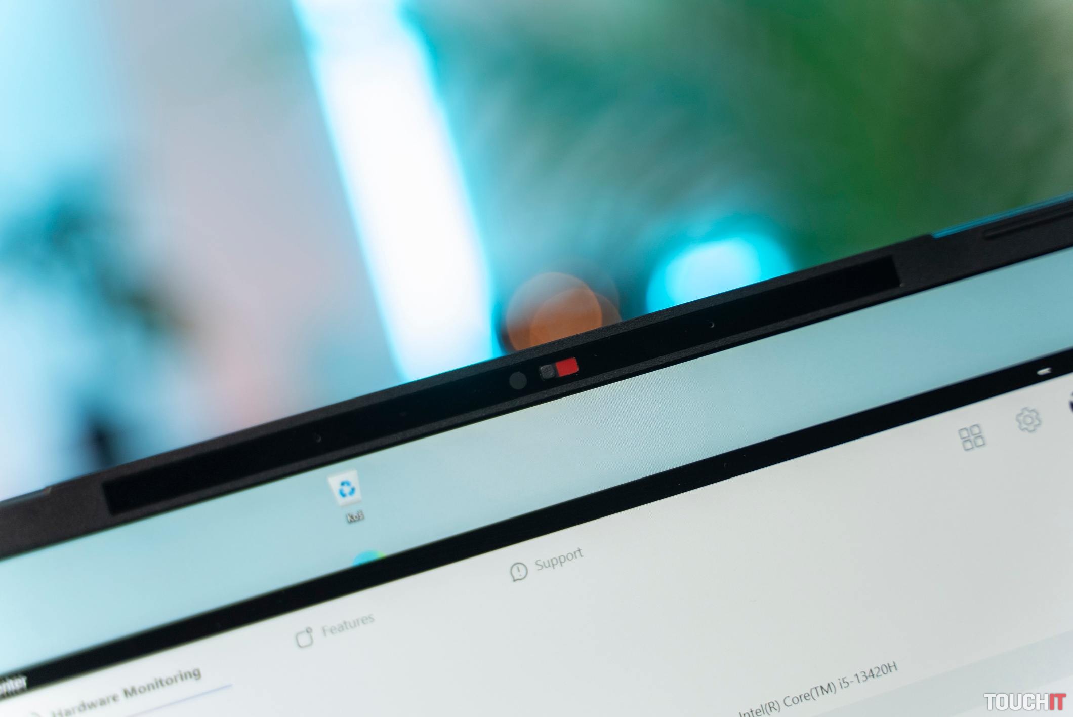Výrobca myslel na množstvo detailov a na klávesnicu pridal aj špecializované tlačidlá na vypnutie mikrofónu, touchpadu alebo na rýchlu zmenu výkonového režimu. Podľa toho, či chcete dosahovať najvyšší možný výkon alebo sa zameriate na tichý chod a výraznejšiu úsporu energie. Absolútnou špecialitou, ktorá sa len tak nevidí, je špeciálne tlačidlo na vertikálne otočenie obrazu. Veko sa dá vyklopiť až na takmer 180° uhol, takže využitie špeciálneho klávesu dáva význam.