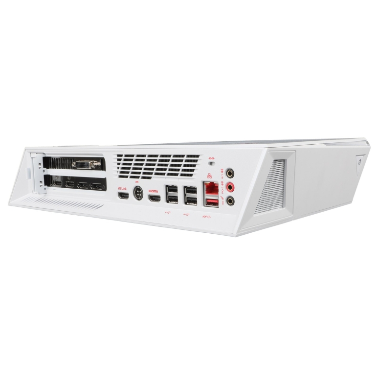 Okrem kompaktných rozmerov nás Trident potešil nevtieravým osvetlením a najmä bohatou portovou výbavou. Na prednej strane nájdete HDMI port pre pripojenie VR okuliarov, dva USB 3.0 porty, USB-C port a dvojicu 3,5 mm jackov pre slúchadlá a mikrofón. Na zadnej strane skrinky sa nachádza ethernet, štyri USB 2.0 porty, jeden USB 3.0 port a ďalšie dva HDMI porty + výstupy z grafickej karty – 2× DisplayPort, 2× HDMI výstup a DVI. Na zadnej strane tiež nájdete ďalšie tri 3,5 mm konektory. V tomto smere treba MSI pochváliť, portová výbava je skutočne bohatá a s veľkou rezervou zvládne aj pripojenie VR okuliarov.