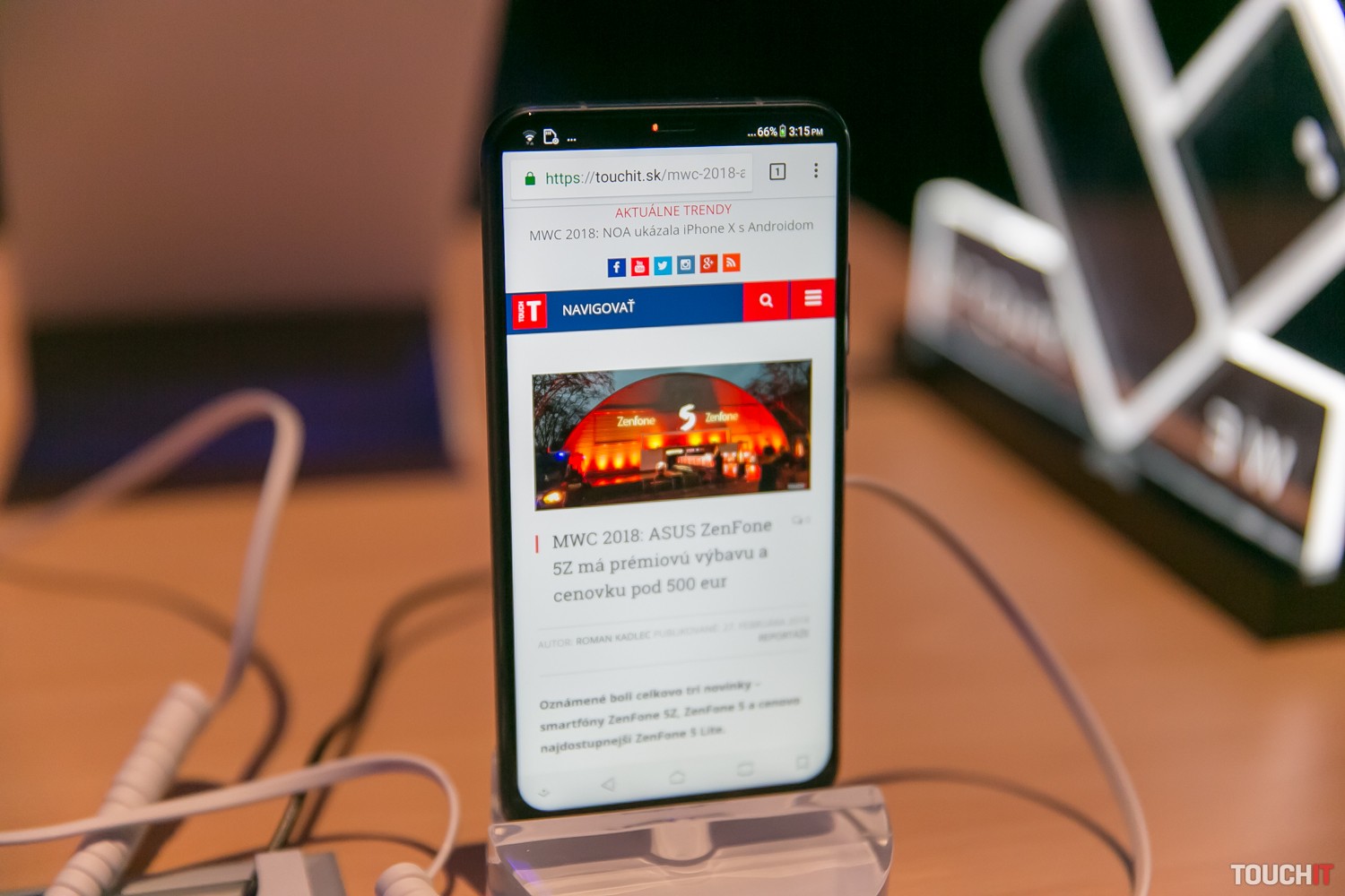 ASUS posúva hranice, tento displej má pomer 19:9. Zenfone 5 a Zenfone 5z majú rovnaké rozmery. ASUS Zenfone 5 v plnej kráse. Model 5z vystavený nie je, nakoľko má rovnaký dizajn ako klasická verzia. To nás prekvapilo.