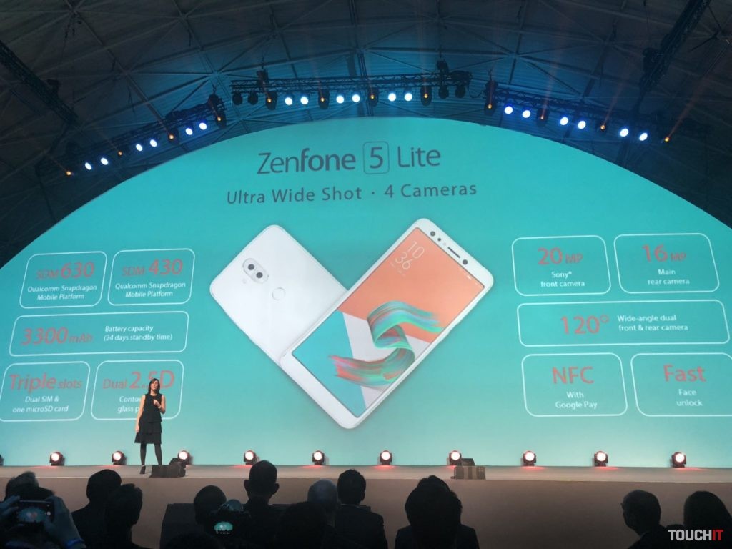ZenFone 5 Lite má 6-palcovú uhlopriečku obrazovky s pomerom strán 18:9, rozlíšenie Full HD+ (2160 x 1080 px) a procesor Snapdragon 630 alebo 430. Tento smartfón vyniká najmä štvoricou fotoaparátov – vpredu aj vzadu nájdete kombináciu štandardného a 120° fotoaparátu. Nechýba ani odomykanie tvárou.