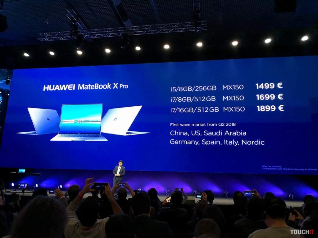 Huawei predstavil na veľtrhu MWC 2018 ďalšiu generáciu svojho notebooku MateBook. Model MateBook X Pro je špičkovo vybavené zariadenie, ktoré poháňa procesor Intel Core i7-8550U a dedikovaná grafická karta NVIDIA GeForce MX150. Aj napriek nadštandardnému mobilnému výkonu dosahuje hrúbka notebooku v najtenšom bode iba 4,9 mm, jeho hmotnosť je 1,33 kg. Novinka vyniká aj doteraz najlepším pomerom obrazovky k telu na úrovni 91%. MateBook X Pro má 13,9-palcový displej s rozlíšením 3000 × 2000 px a s podporou dotykového ovládania. Obrazovka má maximálny jas na úrovni 450 nitov, kontrast dosahuje 1500:1.