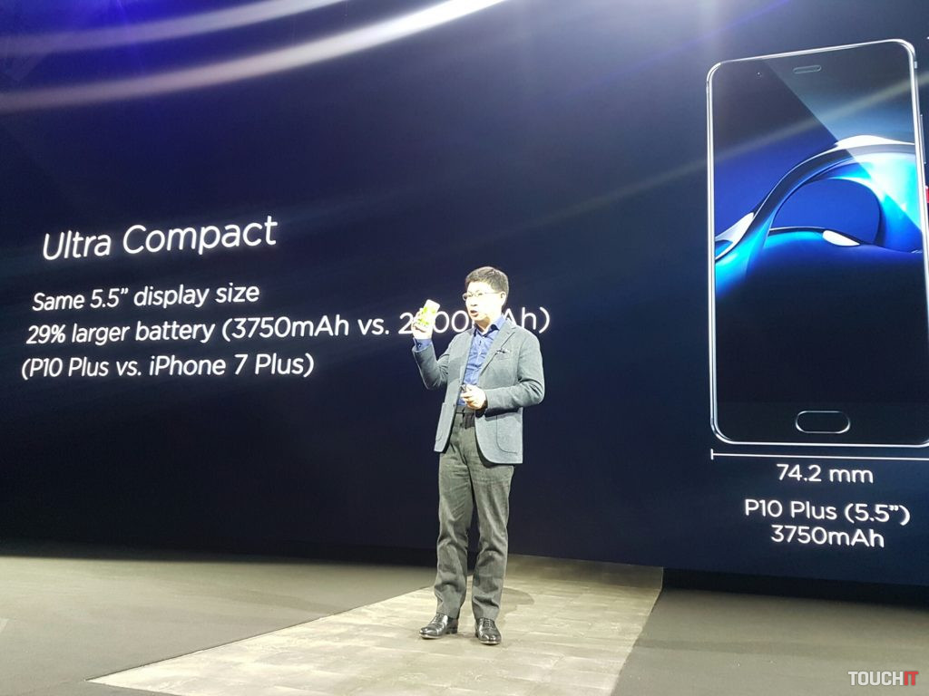 Šírka P10 Plus je iba 74.2 mm. Len pre porovnanie – iPhone 7 Plus má rovnako veľký displej, ale šírka zariadenia je 78 mm.