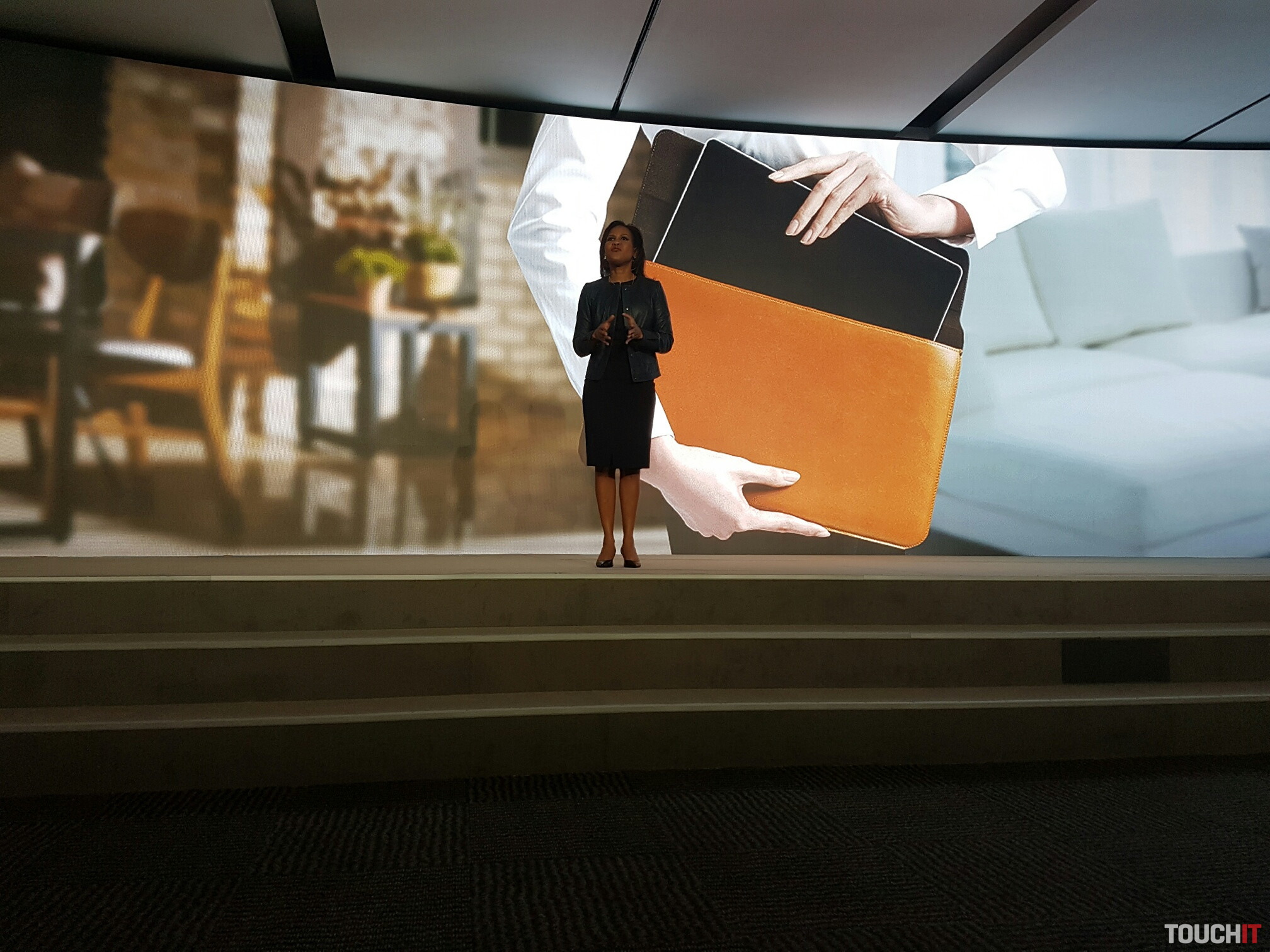 Na pódium bola pozvaná aj Peggy Johnson z Microsoftu – samozrejmosťou Galaxy Booku je OS Windows, na prácu ideálne.