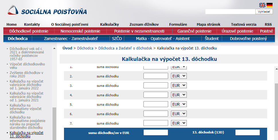 Sociálna poisťovňa pripravila pre poberateľov dôchodku Kalkulačku na výpočet sumy 14. dôchodku (oficiálne je nazvaný 13. dôchodok vyplatený v decembri 2022).