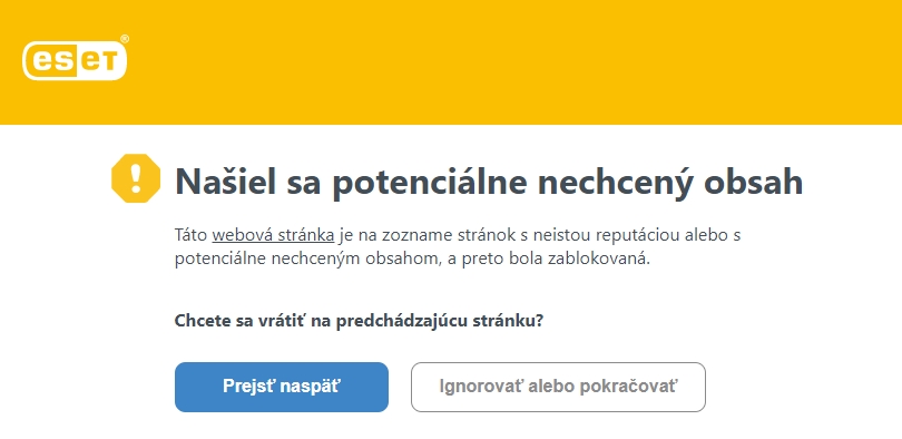 Pokus o prístup na rizikovú stránku priamo od bezpečnostného programu ESET
