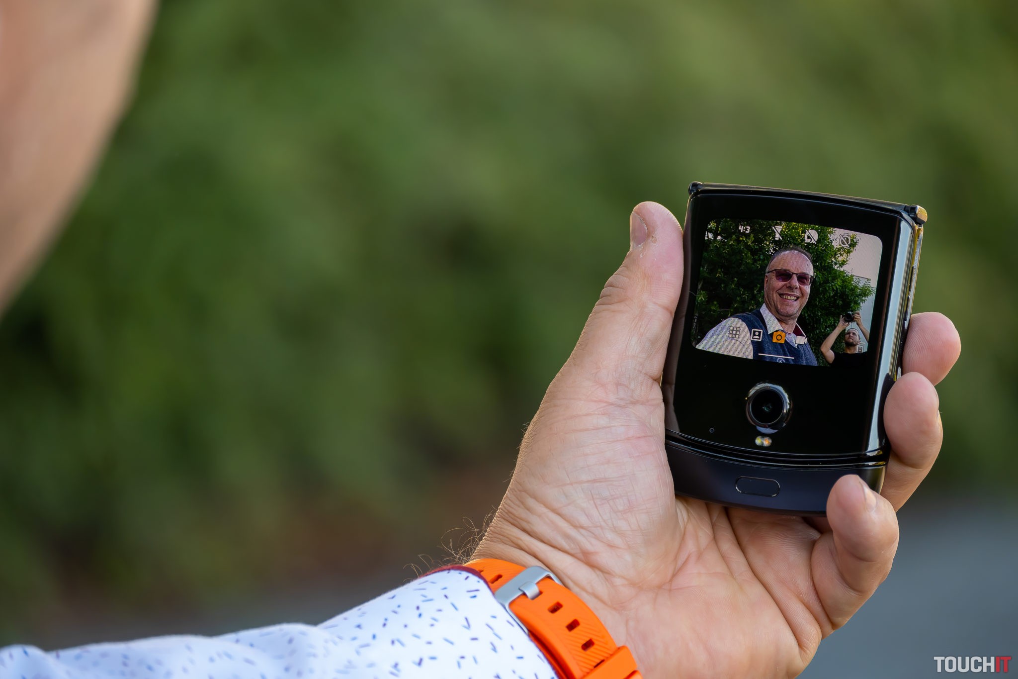 Okrem hlavného fotoaparátu na vonkajšej strane telefónu (ale pritom sa s ním dajú robiť selfie fotky) existuje aj vo vnútri pri skladacom displeji aj ďalší 5 Mpx fotoaparát. Ten sa využíva napr. pri video konferencii. Škoda, že Razr nevie samostatne držať displej v zloženom stave v ľubovolnom uhle ako to vie napr. Samsung Flip. Tam sa táto vlastnosť dá použiť namiesto statívu.