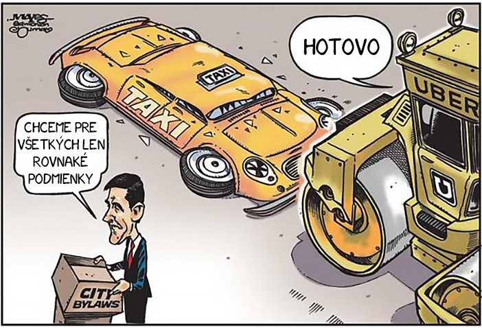 Nuž, treba povedať, že toto nemusí byť výhradne a večne pravda. Zoberme si napríklad taký Uber. Čo myslíte, aký je z pohľadu tejto firmy ideálny stav tohto druhu dopravy v budúcnosti? Vzhľadom na to ako firma bezohľadne a masívne vtrhla na svetové trhy (viď článok: Uber: gigant na vratkých nohách), je odpoveď jednoduchá – kompletné nahradenie súčasných taxislužieb.