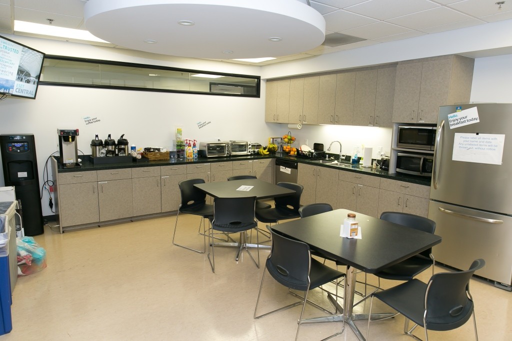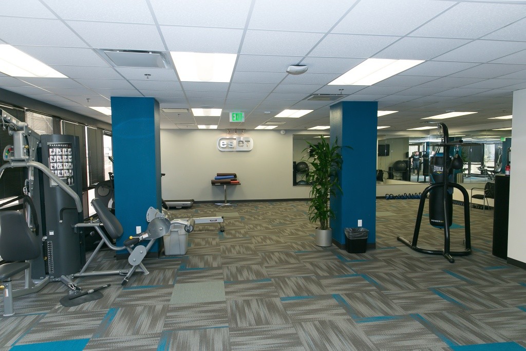 Na každom poschodí nájdete malú kuchynku, nápoje sú zadarmo aj malé občerstvenie. V jednej z nižších budov sme boli aj v telocvični, môžete tu cvičiť na strojoch, je tu náradie na crossfit, stolný tenis, šípky a pod. Tu sme našli ako spomienku aj zasadací poriadok slávnostnej večere pri príležitosti návštevy prezidenta SR, Andreja Kisku pri jeho návšteve USA. Vonku sme našli vírivku a bazén. Väčšina ľudí v ESET-e nemá pevnú pracovnú dobu, dôležité sú predovšetkým dosiahnuté výsledky. Na obed chodia do okolitých reštaurácií, ktorých je dostatok, predovšetkým sú tu mexické a talianske podniky. Lístky na obed od zamestnávateľa sú skôr slovenskou špecialitou, v západnom svete to nie je zvykom.