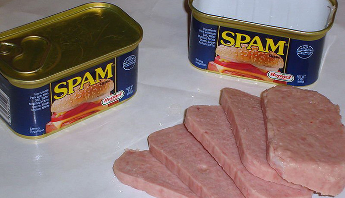 Spam je v origináli označenie pre Luncheon meat, či hovorovo po slovensky „lanšmit“. Ide o konzervované mleté mäso, pripomínajúce tuhú paštétu, ktoré sa sprvu vyrábalo pre Britskú armádu a neskôr sa dostalo na pulty obchodov.