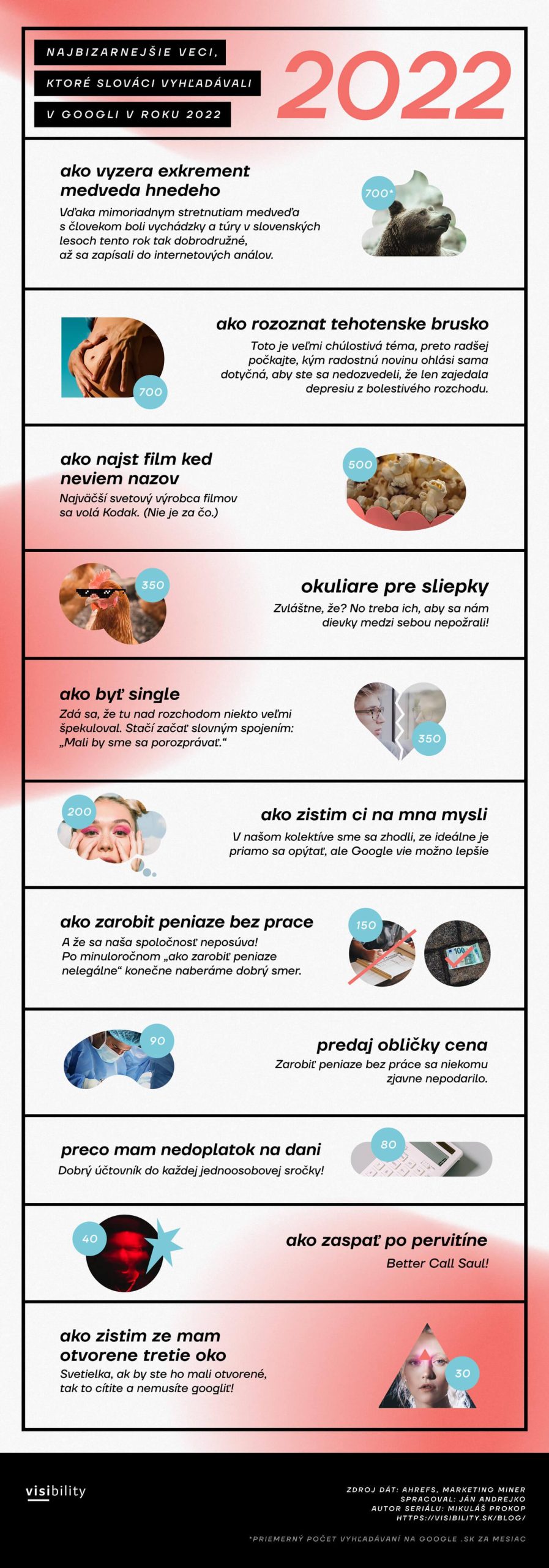 Na základe prieskumu je zrejmé, že rok 2022 bol na bizarnosti vyhľadávané Slovákmi na Googli ešte plodnejší ako minulé ročníky. O všetkom hovorí infografika nižšie.