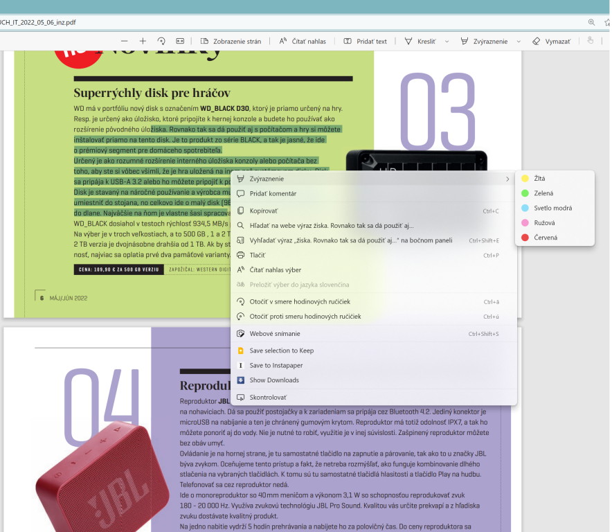V zásade už nepotrebujete softvér na pozeranie PDF dokumentov. Otvoríte si ich priamo v internetovom prehliadači, tu sa dajú aj uložiť alebo do nich robiť značky. To je ale zásluha PDF formátu, nie samotnej aplikácie, nech ide o akúkoľvek z nich. Microsoft Edge je v tomto jasným favoritom. Môžete používať iný hlavný prehliadač internetu a tento si zvoliť na otváranie PDF dokumentov. Pridané komentáre a zvýraznenia textu sa uložia.