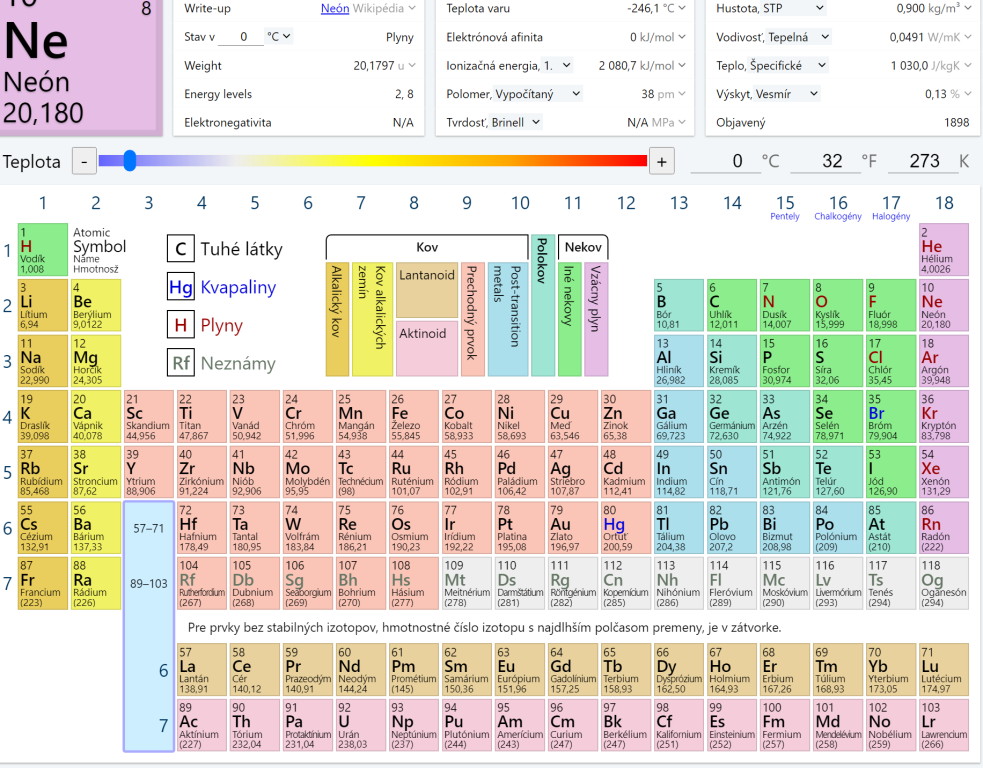 Začnime tipmi na webové stránky a základom, ktorý vás neobíde. Periodická sústava prvkov. Tá je na webe www.prvky.com alebo www.ptable.com. Spracovanie je interaktívne s množstvom doplnkových informácií. V druhom prípade máte možnosť zobrazovať prvky v tabuľke podľa ich teploty a zistiť tak, ako sa mení ich charakteristika. Na výber sú rôzne filtre a je to asi najlepšia tabuľka, akú sme kedy videli.