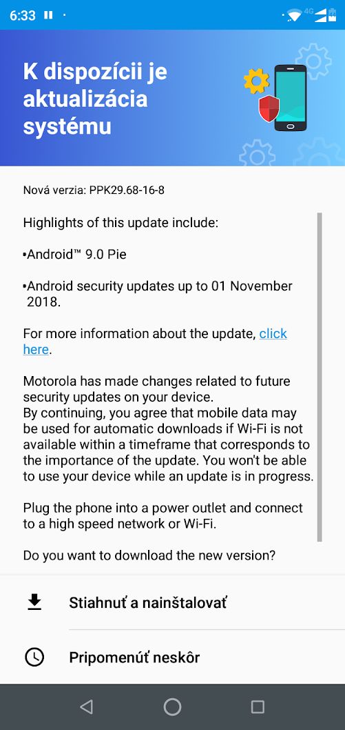 motorola one už dostala aktualizáciu na Android 9. Telefón sme aktualizovali aj v redakcii