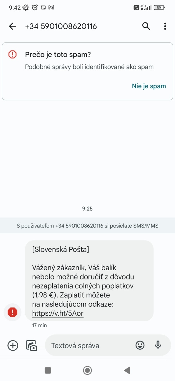 Adresáta najnovšie prostredníctvom SMS alebo MMS vyzývajú na úhradu rozličných poplatkov – napr. colných poplatkov, poplatkov za skladovanie zásielky z dôvodu oneskorenia, za doručenie zásielky, za zmenu doručenia či uloženia zásielky.