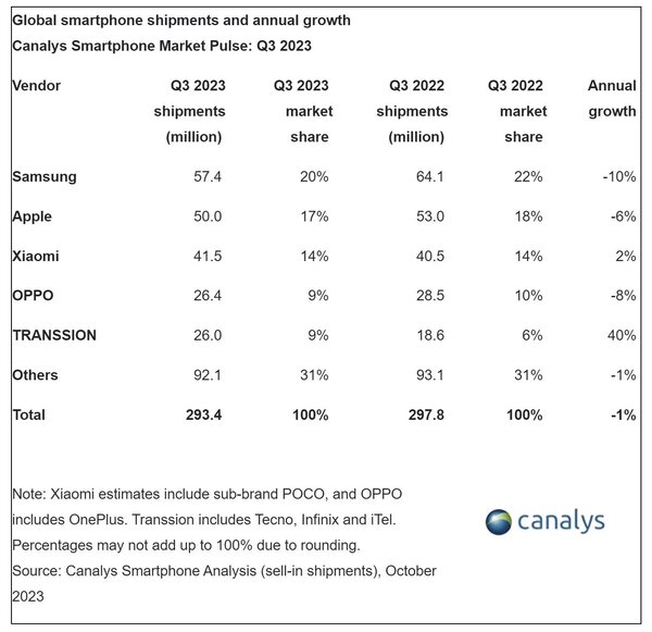 Inak tomu nebolo ani počas posledného kvartálu, teda tretieho kvartálu roku 2023. Počas mesiacov júl – september sa darilo najmä stálym značkám, no priestor získali aj menej známe spoločnosti, ktorým sa rovnako darilo. Niektoré dokonca zaznamenali výrazný nárast predajov smartfónov a nikoho neprekvapí, že šlo najmä o mladé čínske značky.