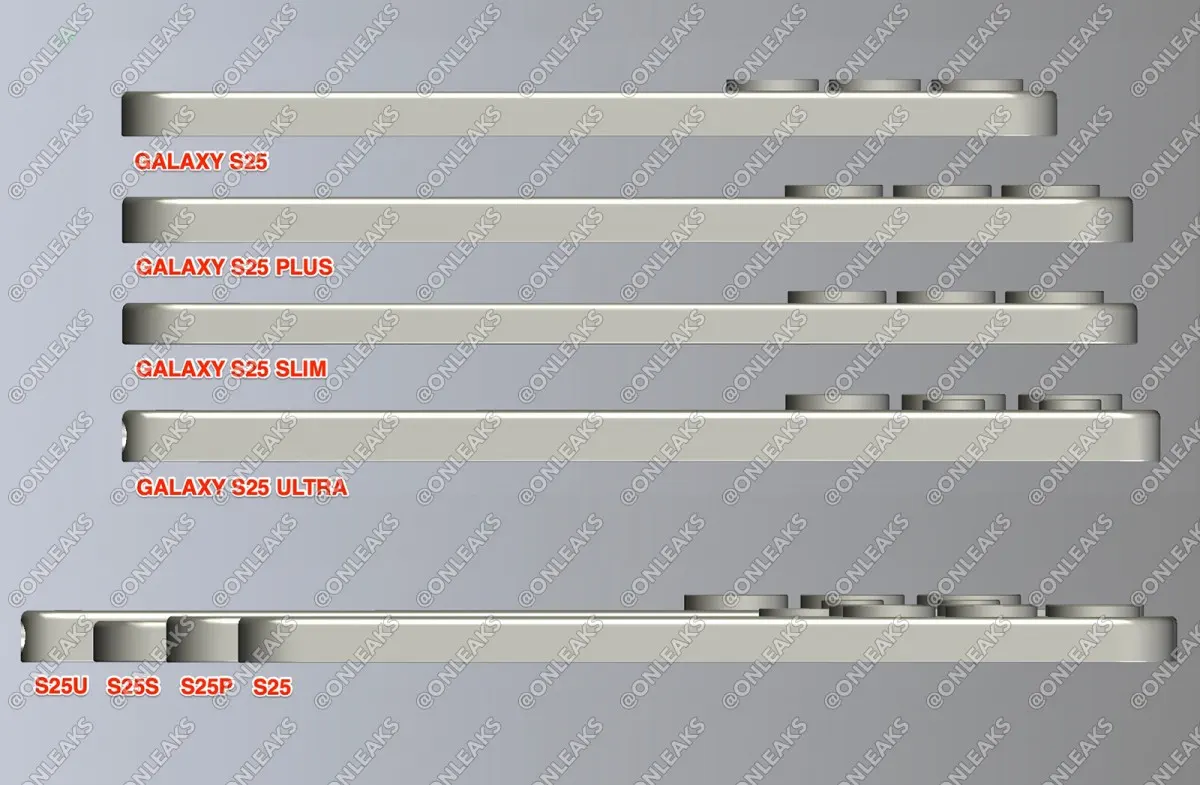 O troch modeloch série Galaxy S25 unikli takmer všetky dôležité informácie, pričom model Slim je stále veľkou neznámou, hoci v týchto dňoch sa aj o tomto modeli dozvedáme viaceré zaujímavé informácie. Po prvých renderoch Galaxy S25 Slim bol zverejnený aj obrázok (nižšie), ktorý znázorňuje hrúbku zariadenia v porovnaní s ostatnými modelmi série Galaxy S25.