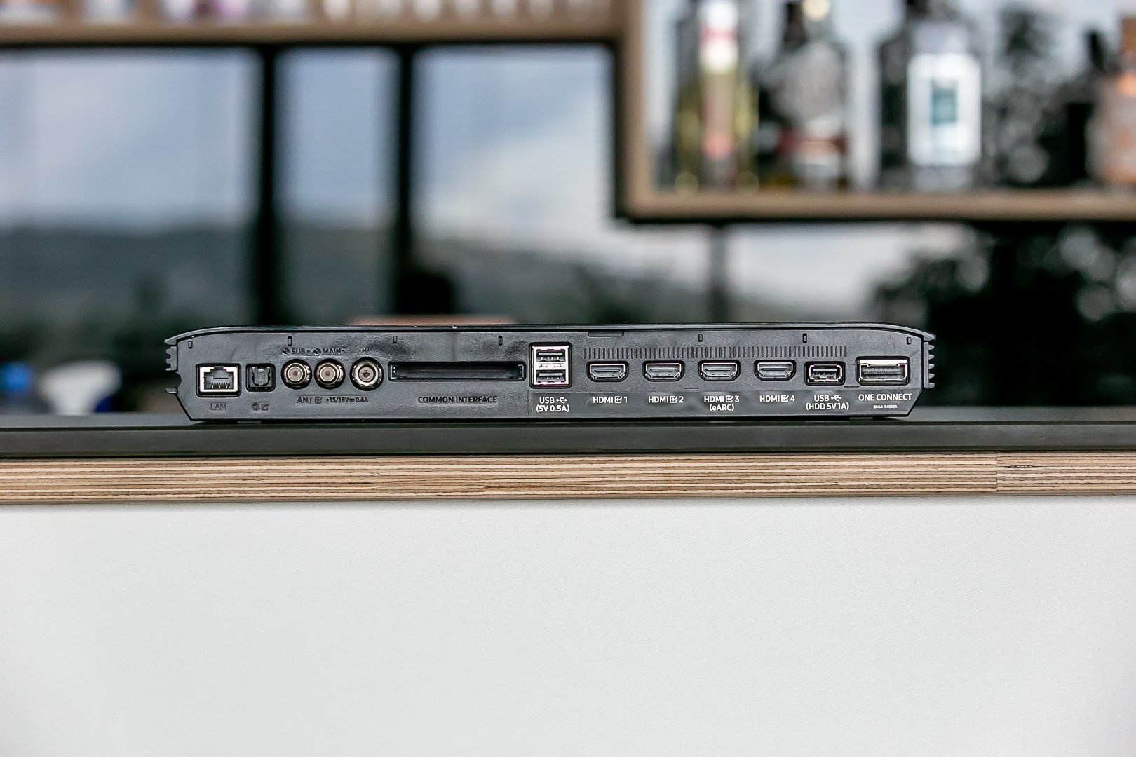 Connect Box sa dá umiestniť tak, že sa doslova opiera o statív, alebo ho môžete dať úplne preč z dosahu očí napr. do šuplíka. Nájdete na ňom 4 HDMI porty, 3 USB porty, terestriálny a satelitný tuner + šachu na CI modul, optický výstup zvuku a Ethernet port. Samozrejme je tu Bluetooth a Wi-Fi pripojenie. Connect box je pomerne ťažký.