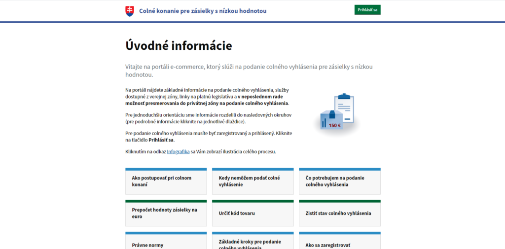 My sme sa boli na detaily opýtať na Finančnom riaditeľstve SR v Bratislave a tu sú naše poznatky. Pre každú zásielku odoslanú z krajiny mimo EU bude treba zaplatiť DPH. Aktuálne je to vo výške 20 %. Pre zásielky so sumou nad 150 eur je to komplikovanejší proces a nepoužíva sa zjednodušené, ale štandardné colné vyhlásenie a okrem DPH sa vyrúbi aj príslušné clo. Vtedy sa postupuje cez štandardné vyhlásenie, ktoré sa podáva cez centrálny elektronický priečinok. Náš ďalší popis sa tak týka zásielok so sumou do 150 eur, čo sa v terminológii Finančnej správy označuje ako „zásielka s nízkou hodnotou„. Na to, aby ste mohli postupovať bez toho, aby ste nikde museli chodiť, Finančná správa zriadila portál so zjednodušeným elektronickým colným vyhlásením. Ten ešte v súčasnosti nie je funkčný, stane sa tak od 1. júla 2021.