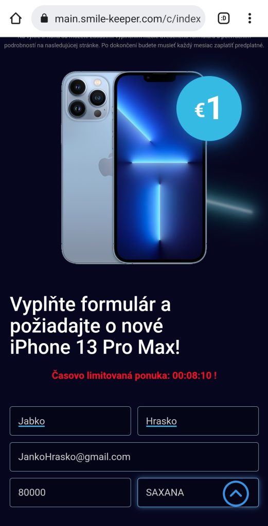 Vyhrali ste a balík bude doručený do 5 až 7 dní. Akurát bude treba zaplatiť poštovné … Na vyplnenie formulára máte obmedzenú dobu 10 minút a čas sa vám počíta. Teraz ide o všetko. Vyplniť vo formulári môžete úplne hocičo.