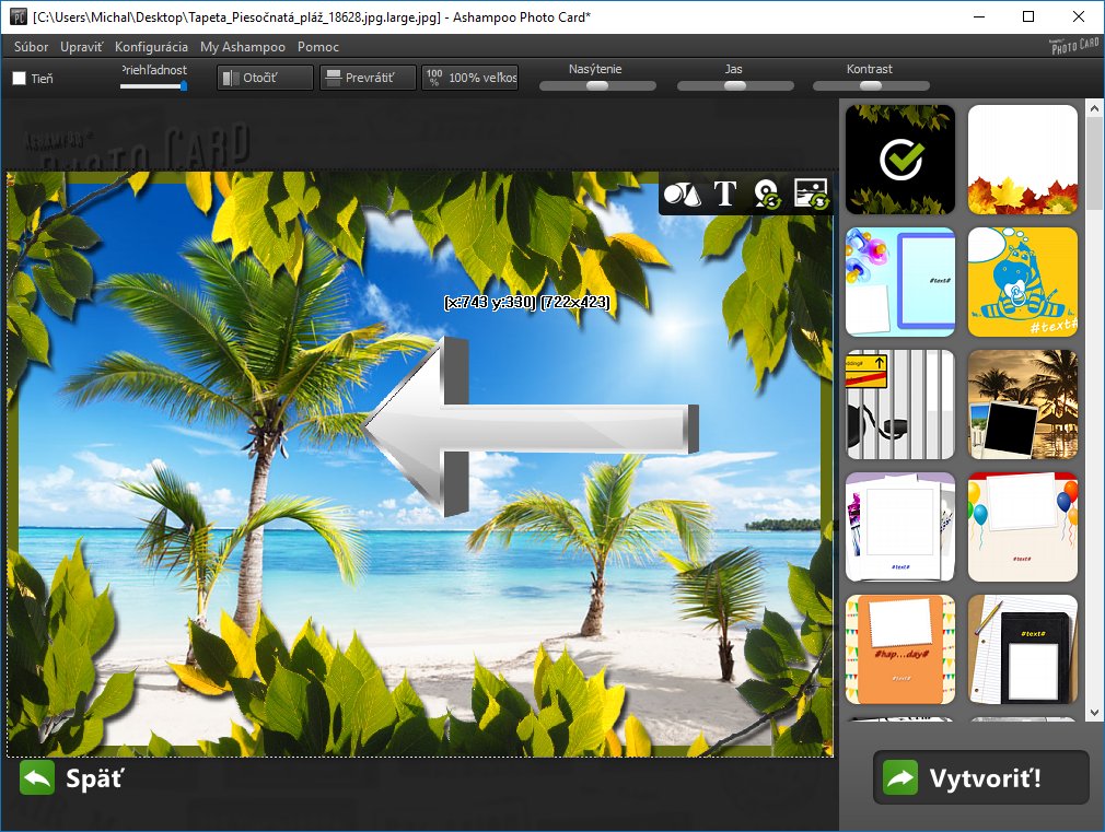 - Motívy pohľadníc, zásoba grafických efektov, možnosti práce s textom, spôsoby exportovania