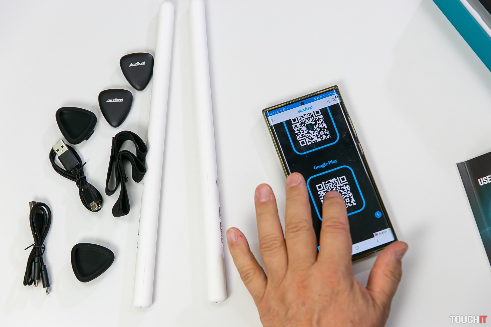 PocketDrum 2 je už druhá verzia domácej výuky hry na bicích od spoločnosti AeroBand. Testovali sme KIT balenie v kompletnom vyhotovení. To znamená, že súčasťou dodávky sú paličky, ďalej dva snímače na nohy a dva nabíjacia káble. Všetky 4 súčasti (paličky a snímače na nohy) sú pripojené pomocou Bluetooth pripojenia a spárovanie sa realizuje v mobilnej aplikácii.