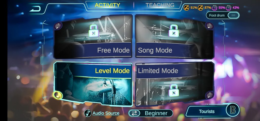Pesničky sa odblokovávajú podľa toho, čo všetko v aplikácii už absolvujete, je to v podstate forma počítačovej hry. Na záver máte celkom jasnú predstavu o tom, či hra na bicie je to pravé pre vás a môžete investovať do skutočnej výuky alebo skutočných bubnov a činelov.