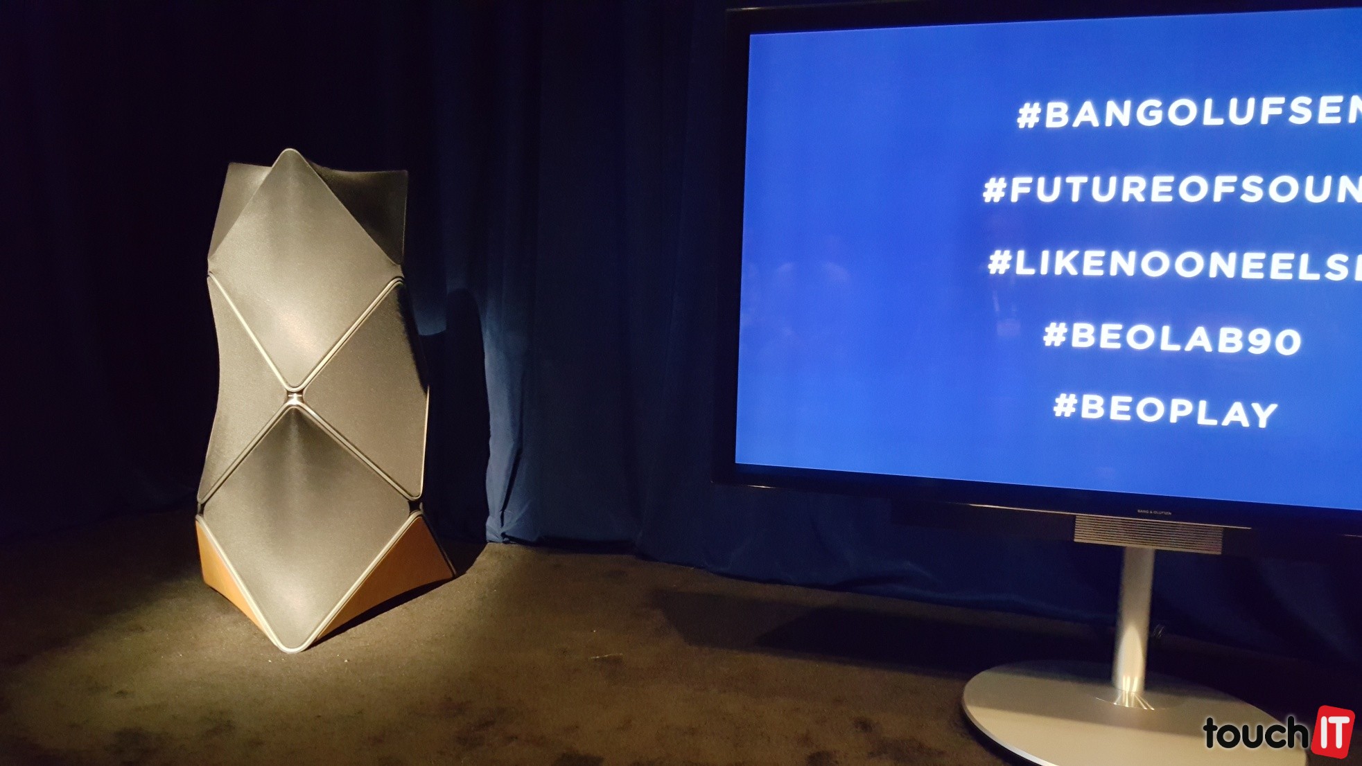 Druhým trhákom tohtoročnej výstavy hudobnej značky na CESe, je 18 meničovýreproduktorBeoLab 90. Tri roky vývoja sa na tomto reproduktore podpísali nielen po dizajnovej stránke, ale aj po hudobnej. Dizajn, uznajte sami, pripomína ultra futuristický scfi-fi film. Keby sme našli BeoLab 90 na vesmírnej stanici Hlboký vesmír 9, ani by nás to neprekvapilo.