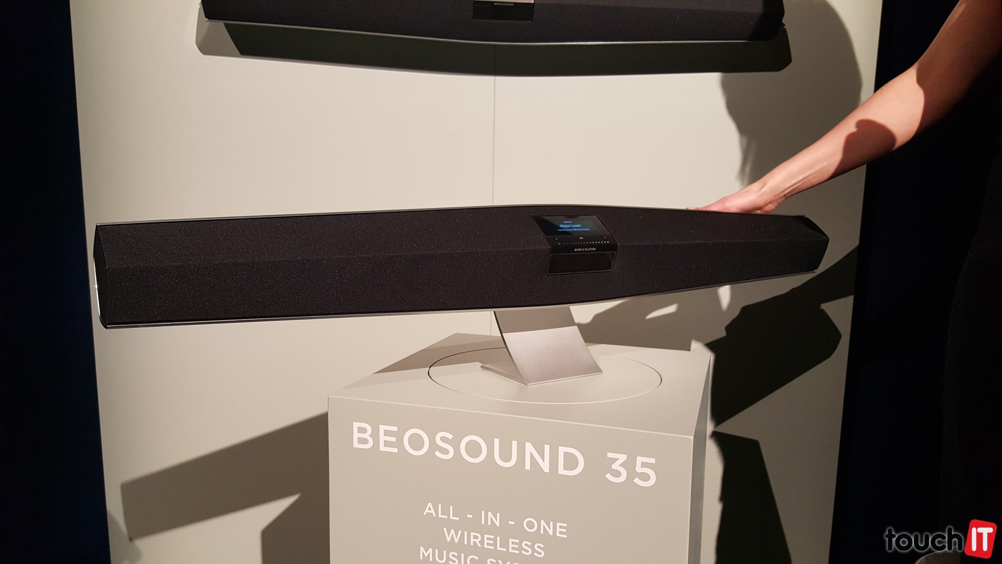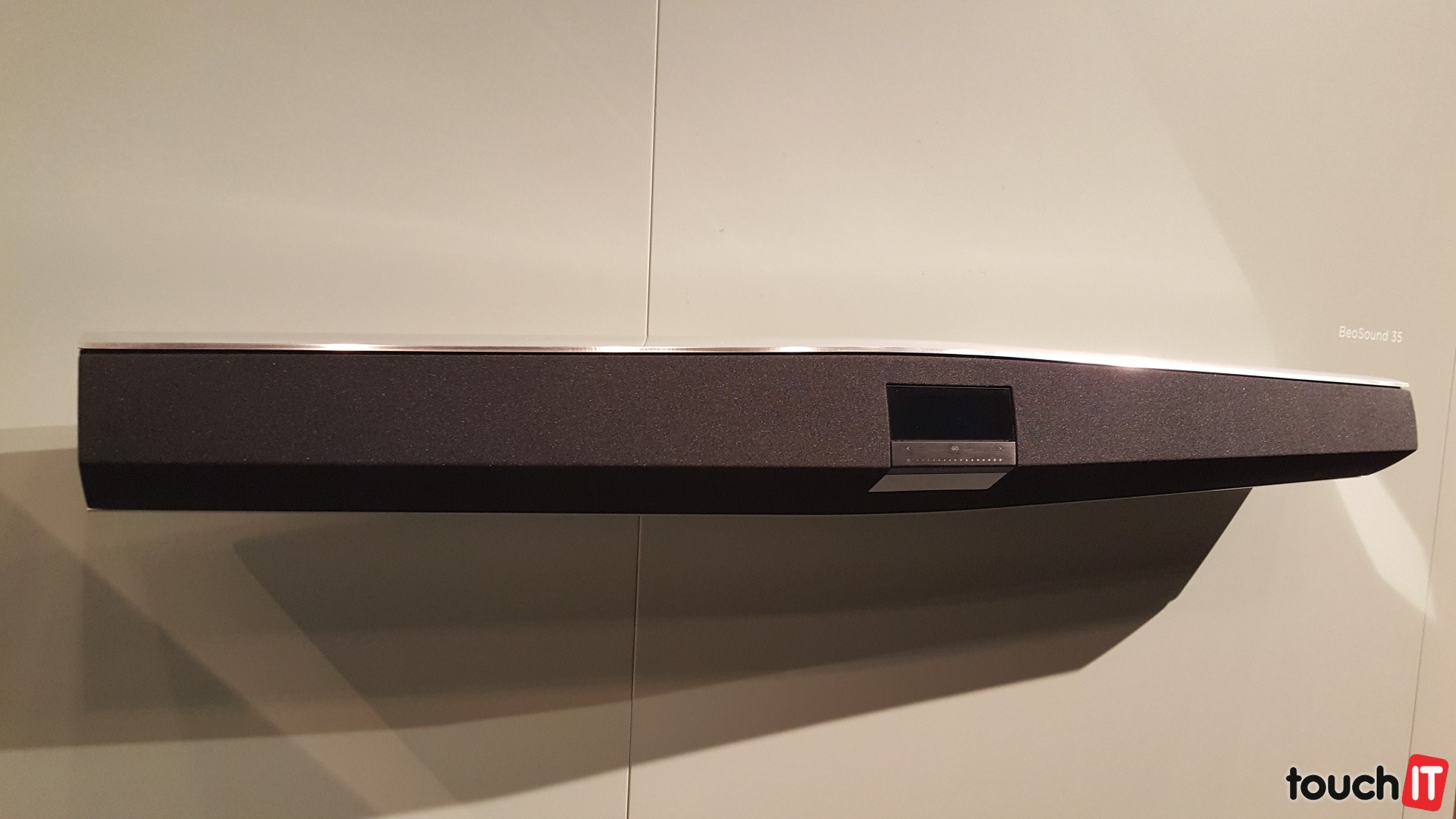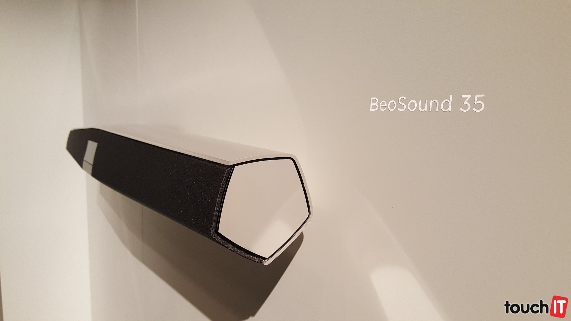 BeoSound 35 s umiestnením na stenuPri bočnej strane sú ukryté výškové meničeTu najlepšie vidno väčšie stredové meniče na reprodukciu basovA nechýba pohľad na reproduktor, pri ktorom uvidíte lepšie jeho skutočnú veľkosť