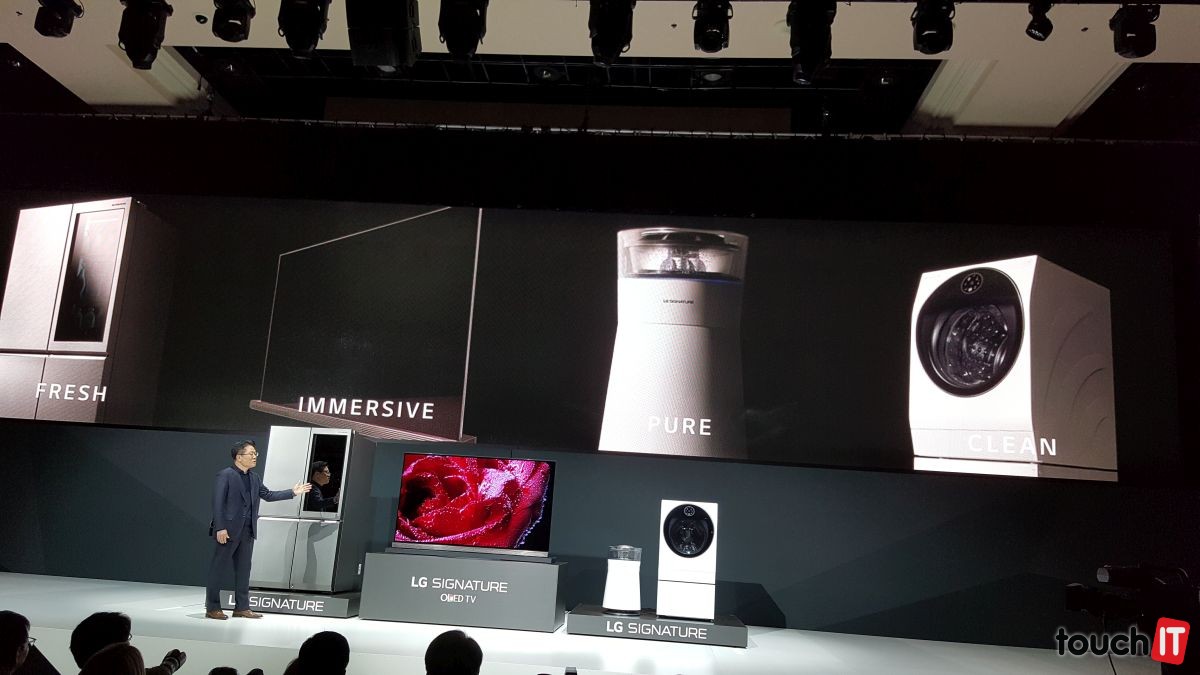 Značná časť tlačovej konferencie sa venovala prémiovým produktom s označením LG Signature. Tento produktový rad obsahuje televízory, chladničky, práčky a ďalšie spotrebiče.