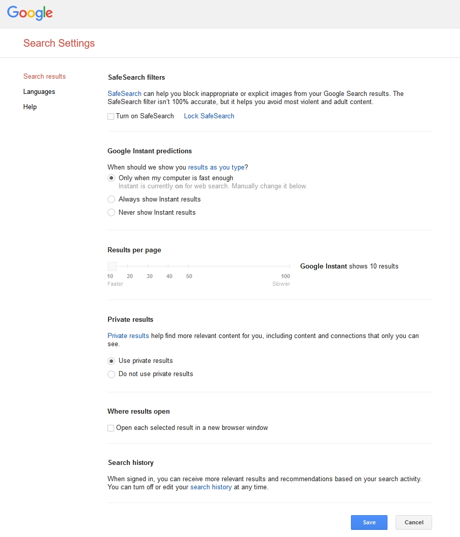 Vypnutie personalizovaného vyhľadávania v nastavení vyhľadávača Google