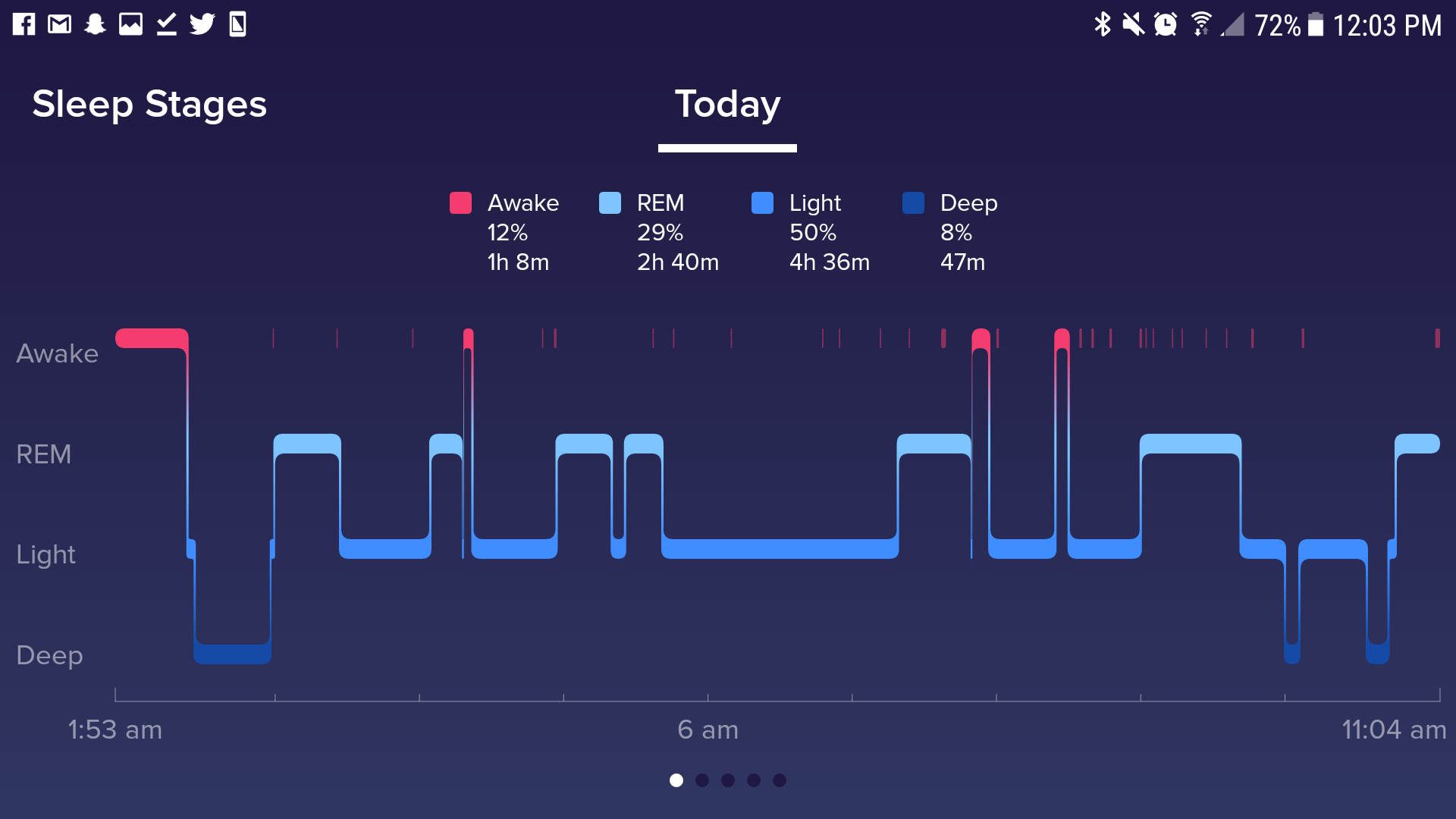Prechod spánkovými cyklami zobrazený aplikáciou hodiniek Fitbit