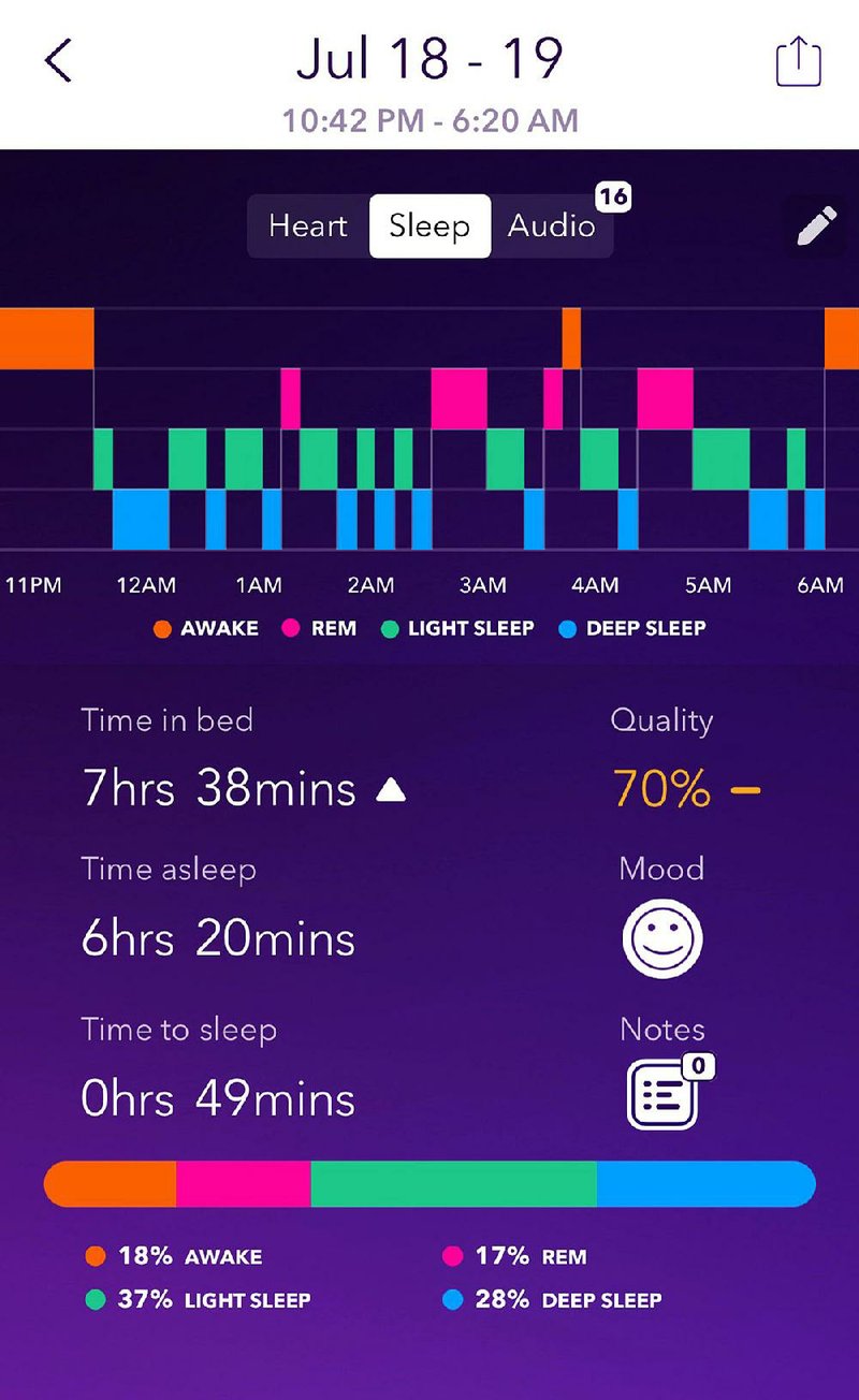 Kvalita vášho spánku bola 70 %. Teda, aspoň si to myslí táto aplikácia…
